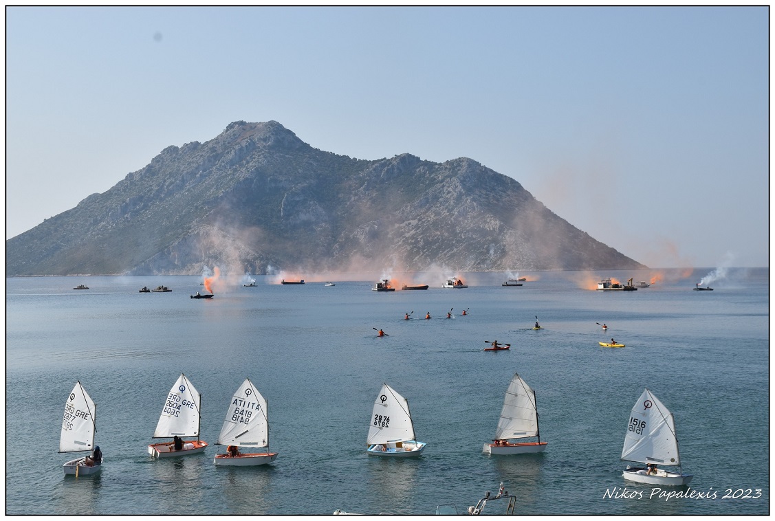 Ακολούθησαν χαιρετισμοί από τους διοργανωτές και ομιλία με το ιστορικό της «Ναυμαχίας του Λεπάντο» απο τον κ. Θεόδωρο Μυλωνά, ενώ με σκάφη που διέθεσε ο Ναυτικός Όμιλος Μεσολογγίου και με πολλούς εθελοντές, έγινε η αναπαράσταση της ιστορικής ναυμαχίας.