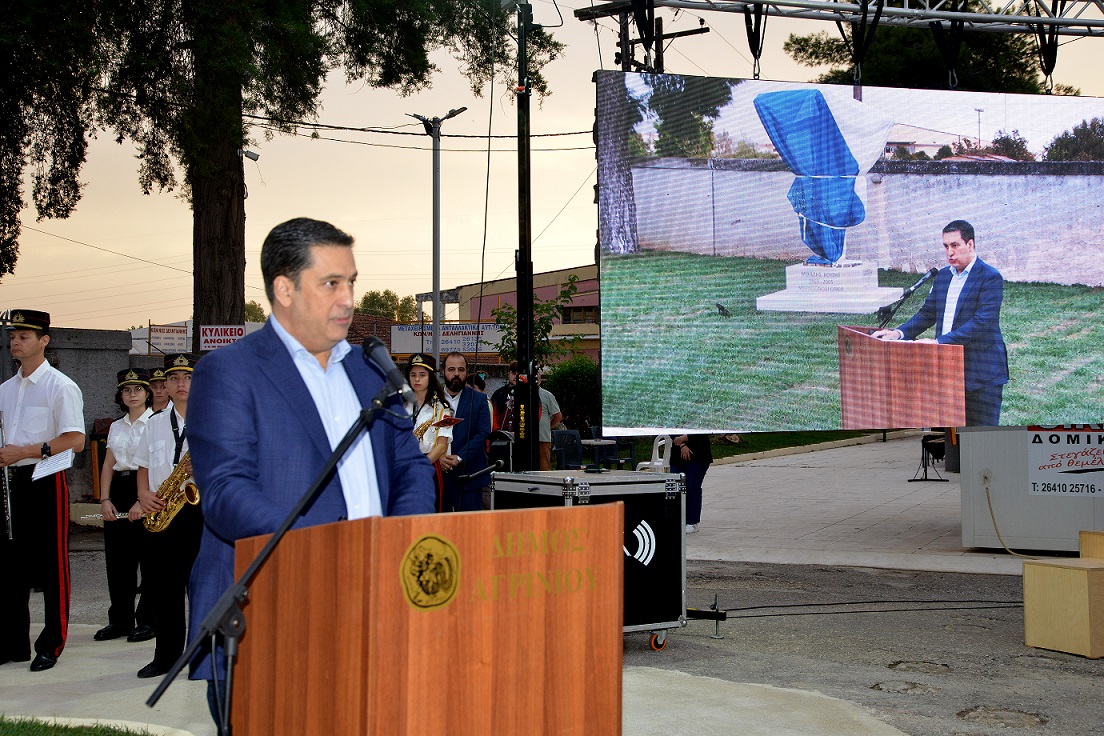 Τα αποκαλυπτήρια έκαναν ο Δήμαρχος Αγρινίου Γιώργος Παπαναστασίου, η σύζυγος Καλλιόπη Κούση και τα δύο παιδιά η Μαρία με τον γιό της Μιχάλη και ο Θανάσης Κούσης.