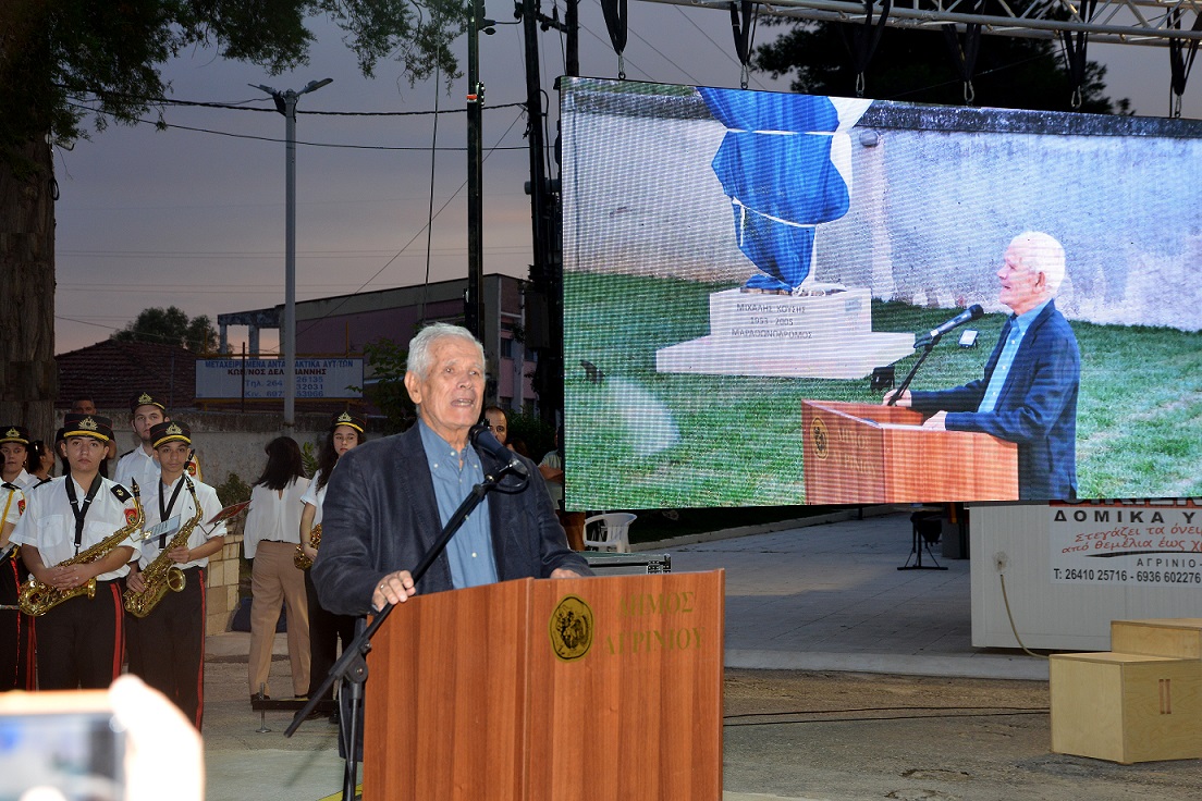 Παρουσία της οικογένειας Κούση, αθλητών, εκπροσώπων συλλόγων και φορέων πραγματοποιήθηκε το Σάββατο 21 Οκτωβρίου 2023, η τελετή των αποκαλυπτηρίων του ανδριάντα του Μιχάλη Κούση. Την είσοδο του ΔΑΚ Αγρινίου κοσμεί πλέον το έργο του γλύπτη Ευάγγελου Τύμπα, ύψους 2,5 μέτρων από ενισχυμένο ορείχαλκο.