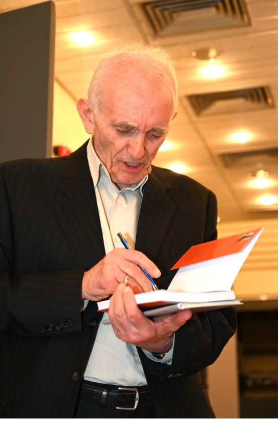 Πλήθος συμπολιτών μας κατέκλυσαν κυριολεκτικά την αίθουσα και όλους τους χώρους του Παπαστρατείου Μεγάρου, μέσα κι έξω. Στη συντριπτική τους πλειοψηφία ήταν Μαθητές του, μέλη των οικογενειών τους, αθλητές και ποδοσφαιριστές που δούλεψαν μαζί και συναγωνιστές που συμπορεύτηκαν στους δρόμους της Ειρήνης, του υγιούς Αθλητισμού και Πολιτισμού, καθώς επίσης στους πολιτικούς αγώνες μακριά από την ευτέλεια, τη διαφθορά και την παρακμή.
