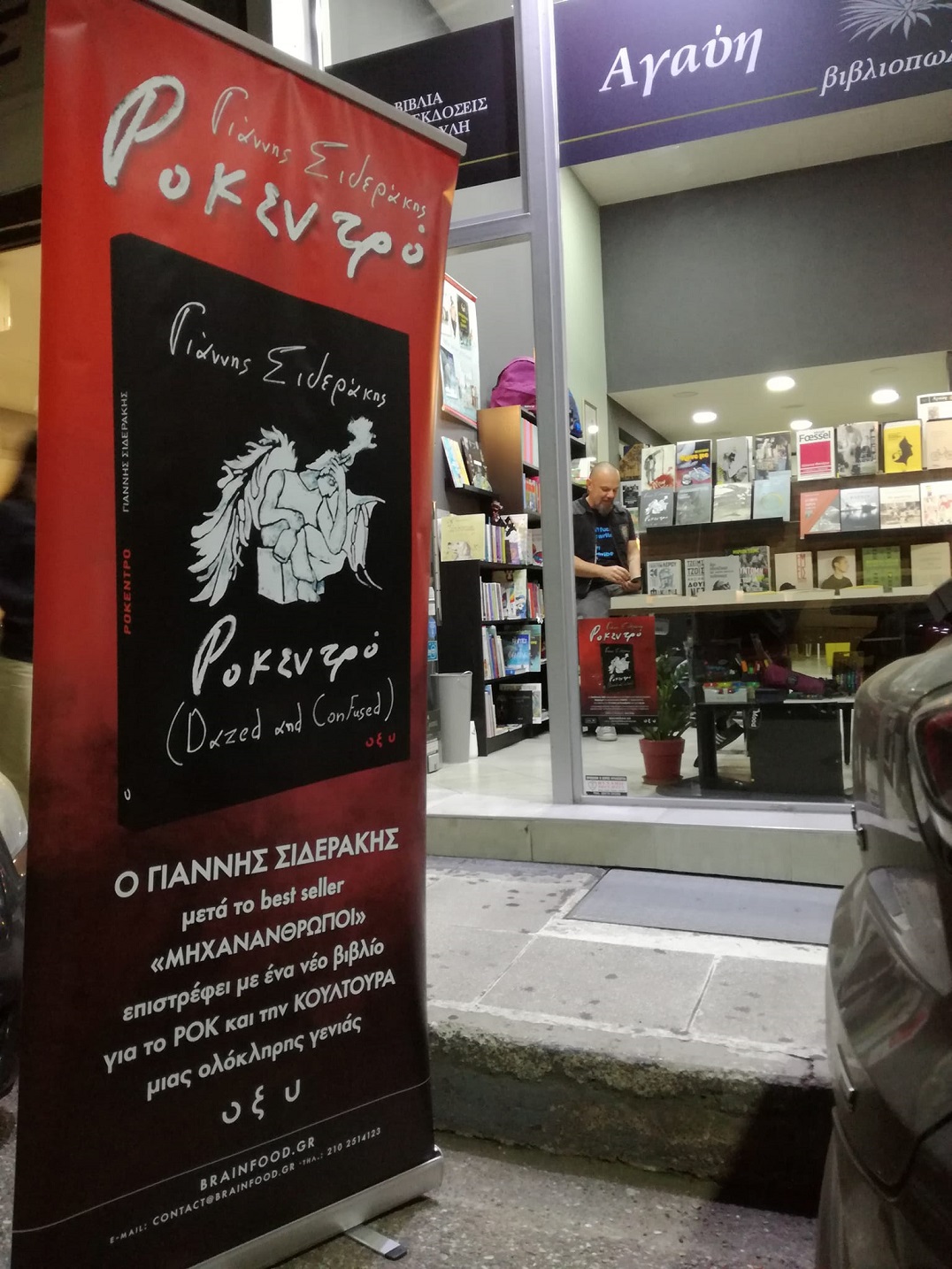 Στον ζεστό και όμορφο λογοτεχνικό χώρο του Βιβλιοπωλείου Αγαύη, στο Αγρίνιο, χθες Τετάρτη 15 Νοεμβρίου φιλοξενήθηκε ο συγγραφέας, Γιάννης Σιδεράκης ο οποίος παρουσίασε στο κοινό το νέο του βιβλίο υπό τον τίτλο: ¨Ρόκεντρο¨ (Dazed and Confuzed), που κυκλοφορεί από τις εκδόσεις ΟΞΥ. Ο συγγραφέας, μέσα από τις σελίδες του βιβλίου του καταθέτει 28 προσωπικές ιστορίες μετά μουσικής.