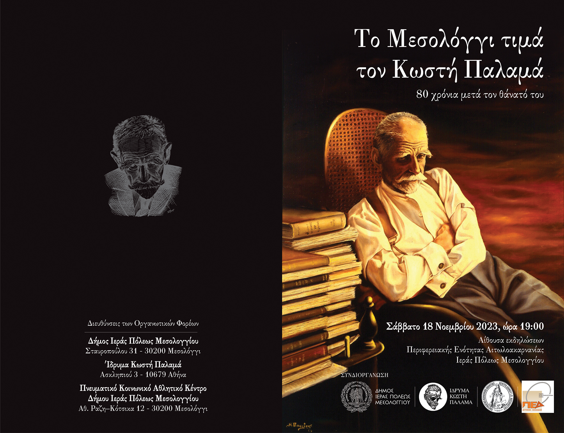 Πραγματοποιήθηκε χθες Σάββατο 18 Νοεμβρίου 2023 στην Αίθουσα Εκδηλώσεων Π.Ε. Αιτωλοακαρνανίας, στην Ι.Π. Μεσολογγίου η επετειακή εκδήλωση υπό τον τίτλο: «Το Μεσολόγγι τιμά τον Κωστή Παλαμά» επ’ αφορμή της συμπλήρωσης 80 ετών από το θάνατο του σπουδαίου ποιητή.