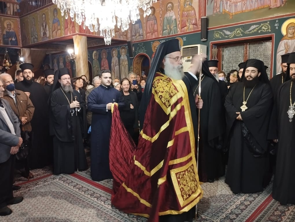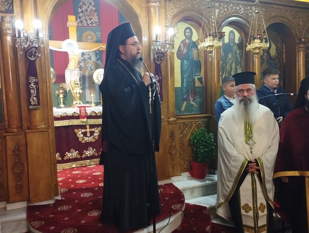 Ο Θεοφιλέστατος χοροστάτησε στην ακολουθία του πανηγυρικού Εσπερινού της εορτής της Αγίας Αικατερίνης, στον ομώνυμο Ιερό Ναό της γενέτειράς του, τα Τριαντέϊκα Αγρινίου, την Παρασκευή 24 Νοεμβρίου 2023, συγχοροστατούντος του Μητροπολίτου Αιτωλίας και Ακαρνανίας κ. Δαμασκηνού.