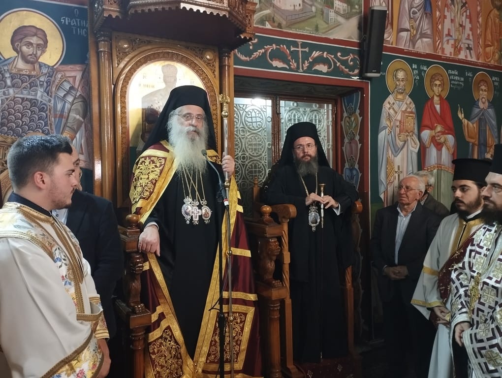 Ο Σεβασμιώτατος καλωσόρισε με θερμούς λόγους τον Άγιο Ταλαντίου, λέγοντας, μεταξύ άλλων, ότι: «Σήμερα η ψυχή σας αγάλλεται και η δική μας ευφραίνεται, διότι επισκέπτεσθε ως Επίσκοπος και Αρχιερεύς την γενέτειρά σας, τον ευλογημένο αυτό τόπο, όπου γεννηθήκατε, ανατραφήκατε και ενηλικιωθήκατε, σωματικά και πνευματικά. Και χαίρεται σήμερα, ολόκληρη η τοπική μας Εκκλησία, ο Επίσκοπός της, οι αδελφοί σας συμπρεσβύτεροι, με τους οποίους υπήρξατε συνοδοιπόροι, οι χοροί των ιεροψαλτών, οι άρχοντες, ο ευλογημένος λαός, οι συντοπίτες σας και για την προαγωγή σας, αλλά και για την ενταύθα ευλογητή παρουσία σας».
