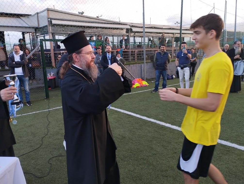Την απονομή των κυπέλων στους νικητές και των μεταλλίων σε όλα τα παιδιά έκανε ο Σεβασμιώτατος Μητροπολίτης Αιτωλίας και Ακαρνανίας κ. Δαμασκηνός, ο οποίος εξέφρασε τη χαρά του για την επιτυχία του ποδοσφαιρικού τουρνουά των Κατηχητικών Σχολείων, που πραγματοποιήθηκε για πρώτη φορά και συνεχάρη τους συμμετέχοντες, τους γονείς τους που ήταν παρόντες, τους υπευθύνους ιερείς και όσους συνέβαλλαν στην επιτυχία της εκδήλωσης. Τόνισε στα παιδιά, ότι παρόλο που διαγωνίστηκαν σε διαφορετικές ομάδες δεν παύει να είναι όλοι αδέρφια, γιατί ανήκουν στην ίδια οικογένεια που είναι η Εκκλησία.