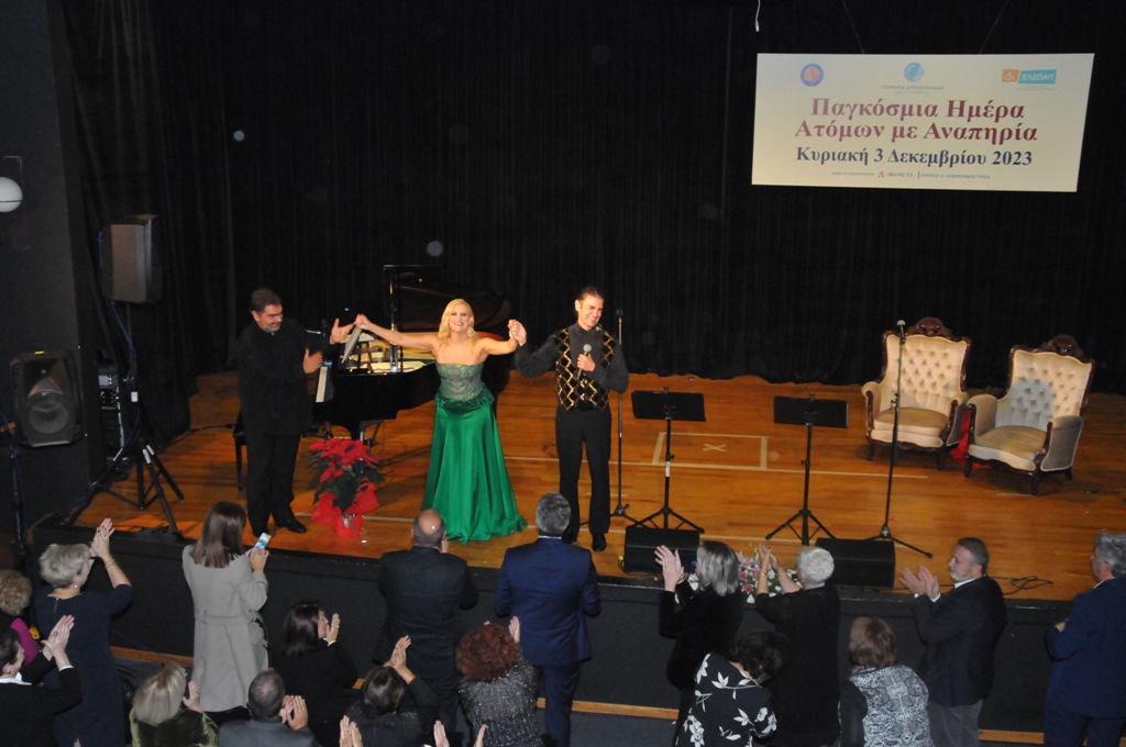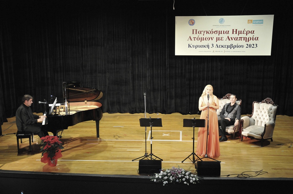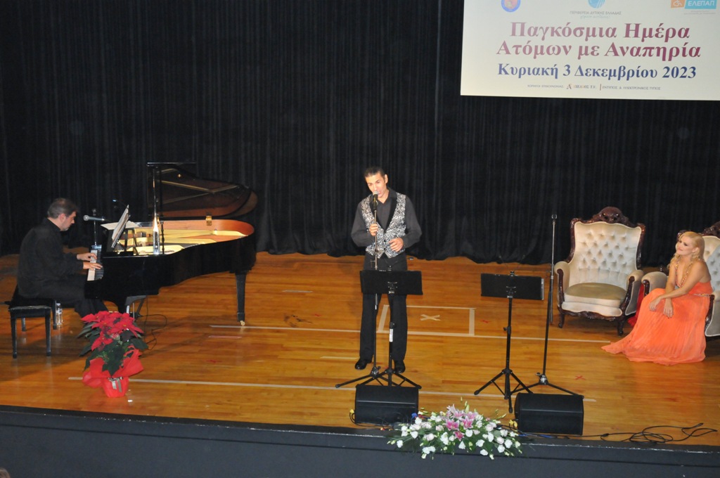 Το Εργαστήρι Ειδικής Επαγγελματικής Αγωγής και Αποκαταστάσεως «Παναγία Ελεούσα» για άτομα με νοητική υστέρηση και συνοδές αναπηρίες (Μεσολόγγι-Αγρίνιο) σε συνεργασία με την Περιφέρεια Δυτικής Ελλάδας και την ΕΛΕΠΑΠ Αγρινίου στο πλαίσιο του εορτασμού της παγκόσμιας Ημέρας των ατόμων με αναπηρία πραγματοποίησαν με μεγάλη επιτυχία την Κυριακή 3 Δεκεμβρίου 2023, στο Παπαστράτειο Μέγαρο Αγρινίου, την μουσική παράσταση «Ενθύμιον έρωτος» με την υψίφωνο Τζίνα Φωτεινοπούλου και τον τραγουδιστή-ηθοποιό Παναγιώτη Πετράκη, υπό τη συνοδεία στο πιάνο και τη μουσική επιμέλεια του μαέστρου Παναγή Μπαρμπάτη.
