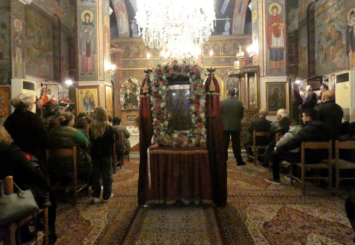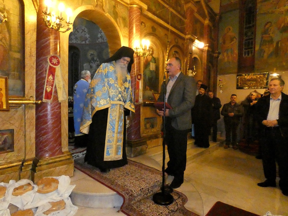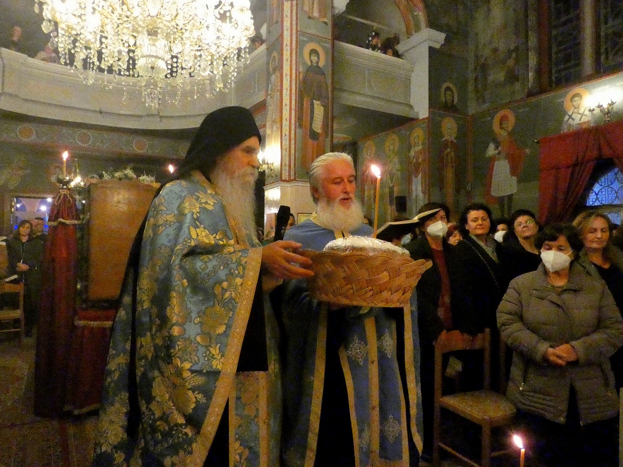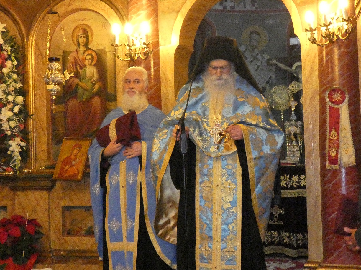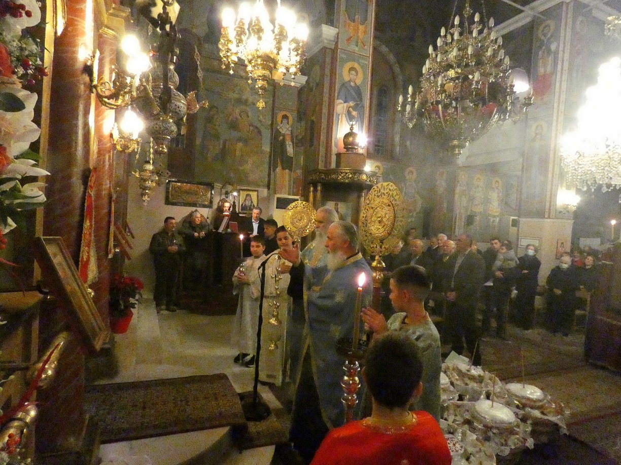 Στον Ι.Ν. Αγίου Νικολάου από τον ιερέα π. Θεοδόσιο Αθανασόπουλο, και τον Καθηγούμενο π. Συμεών Αναστασίου, που λάμπρυνε με την αγιότητά του τις λατρευτικές εκδηλώσεις, εψάλη ο Μέγας Εσπερινός μετ’ αρτοκλασίας, ενώ στη συνέχεια έκανε το θείο κήρυγμα αναφερόμενος στην εορτή και τον βίο του Αγίου Νικολάου, όπου ανέφερε μεταξύ άλλων: