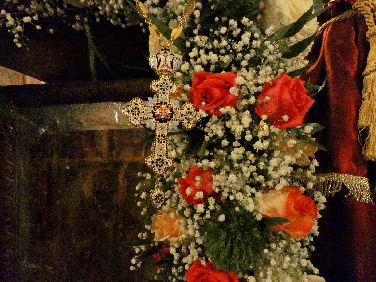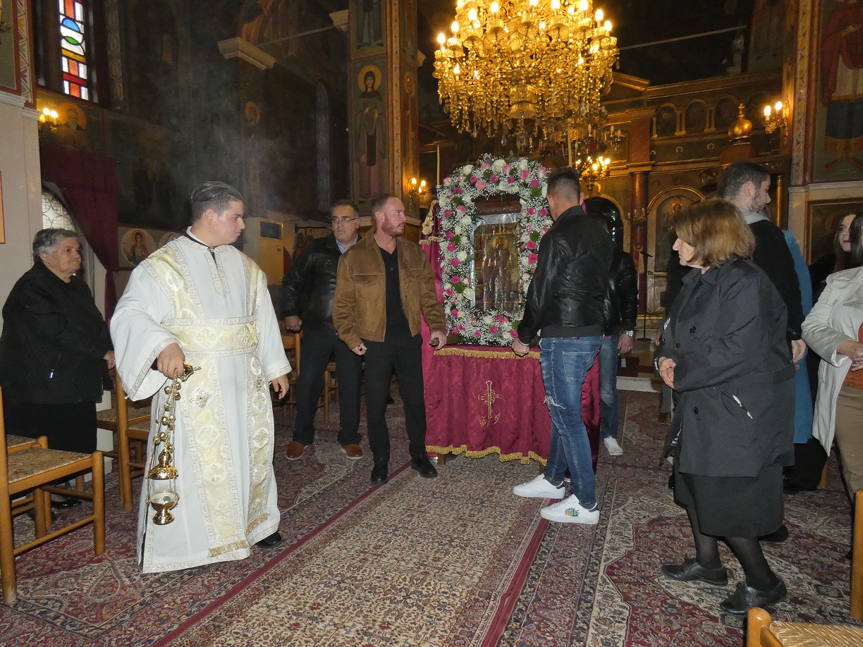 Πριν την απόλυση του Εσπερινού, ο Καθηγούμενος Συμεών Αναστασίου, φανερά συγκινημένος, δώρησε έναν περίτεχνο σταυρό και τον τοποθέτησε στην παλιά εικόνα του Αγίου Νικολάου, ενώ ο ιερέας π. Θεοδόσιος Αθανασόπουλος του πρόσφερε ένα υφασμάτινο περιτραχήλιο.