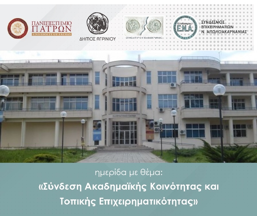 Τα Τμήματα Επιστήμης & Τεχνολογίας Τροφίμων και Αειφορικής Γεωργίας, ο Δήμος Αγρινίου, το Επιμελητήριο Αιτωλοακαρνανίας και ο Σύνδεσμος Επιχειρηματιών Ν. Αιτωλοακαρνανίας, συνδιοργανώνουν τη Δευτέρα 11/12/2023 και ώρα 18:30 στο Αμφιθέατρο των Τμημάτων Αγρινίου ημερίδα με θέμα: «Σύνδεση Ακαδημαϊκής Κοινότητας και Τοπικής Επιχειρηματικότητας».