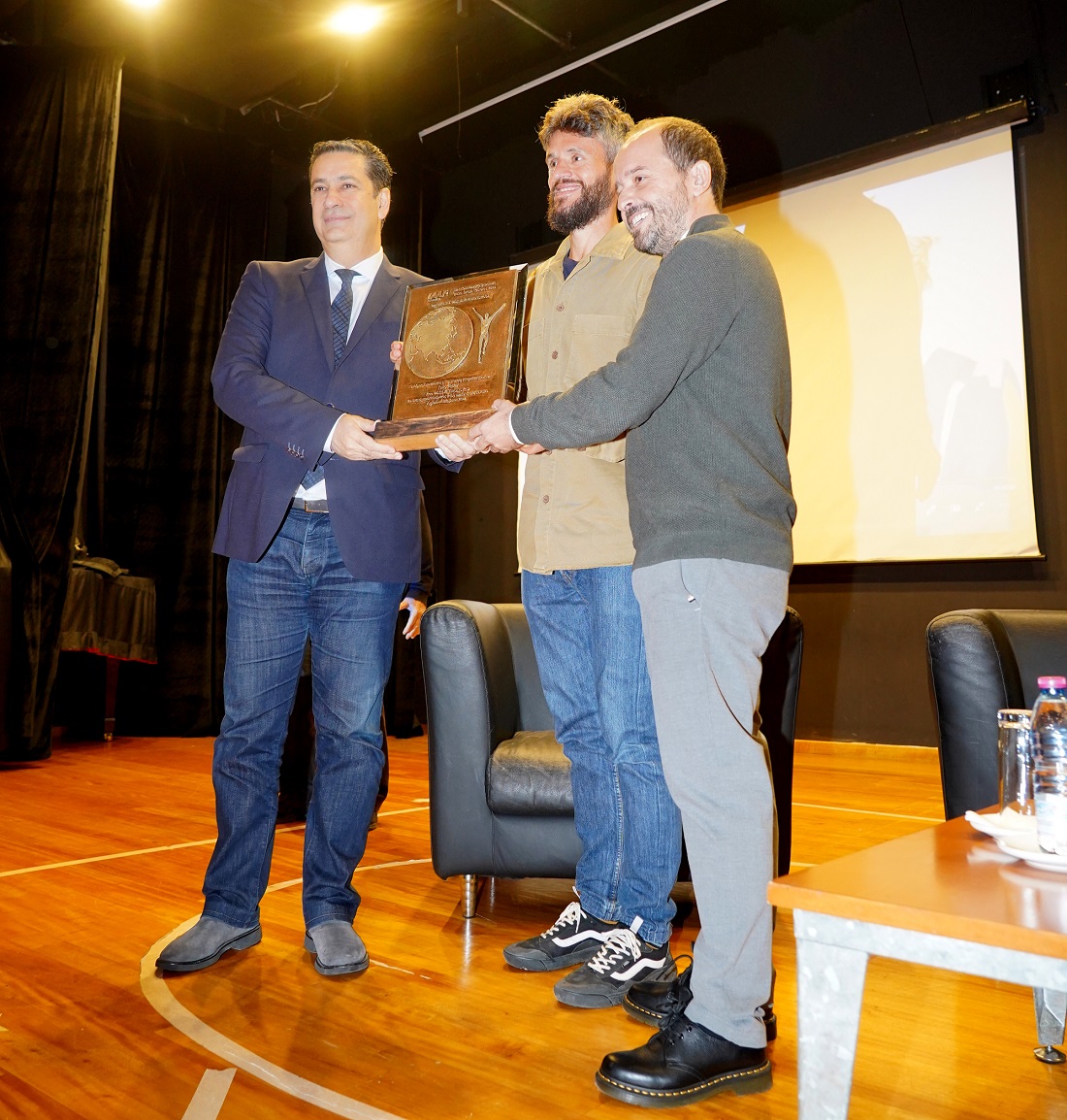 Παρουσία μαθητών Γυμνασίων του Αγρινίου, ο Δήμαρχος Αγρινίου, Γιώργος Παπαναστασίου και ο πρόεδρος της ΓΕΑ, Ανδρέας Μπρέσιακας, επέδωσαν τιμητική πλακέτα στον Αγρινιώτη αθλητή.