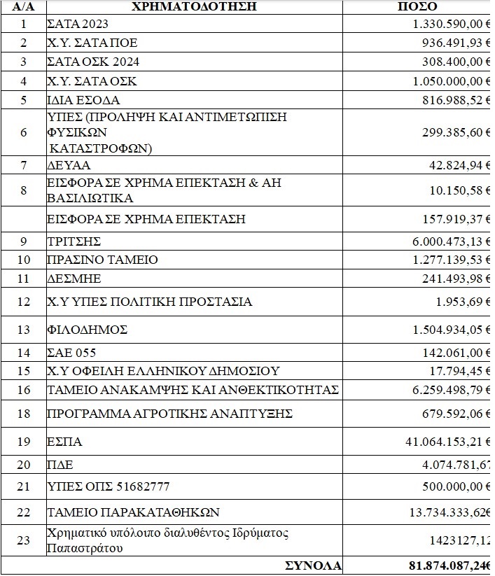 Οι νέες εντάξεις πράξεων αγγίζουν τα 15.808.733,62 €, τα νέα έργα με χρηματοδότηση ΣΑΤΑ και ίδια έσοδα 1.349.849,29 και τα συνεχιζόμενα έργα ανέρχονται στο ποσό των 80.505.037,95 €.