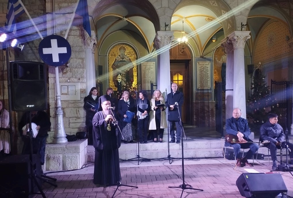 Στην χριστουγεννιάτικη μουσικοχορευτική εκδήλωση: «Εβγάτε, δείτε, μάθετε πού ο Xριστός γεννάται», που διοργάνωσαν ο Τομέας Πολιτισμού της Περιφέρειας Δυτικής Ελλάδας, το Πολιτιστικό Εργαστήρι Ιεράς Πόλεως Μεσολογγίου και ο Εμποροβιομηχανικός Σύλλογος Ιεράς Πόλεως Μεσολογγίου, το απόγευμα του Σαββάτου 23 Δεκεμβρίου 2023 στον αύλειο χώρο του Ιερού Μητροπολιτικού Ναού Αγίου Σπυρίδωνος στο Μεσολόγγι παρέστη ο Σεβασμιώτατος Μητροπολίτης Αιτωλίας και Ακαρνανίας κ. Δαμασκηνός.
