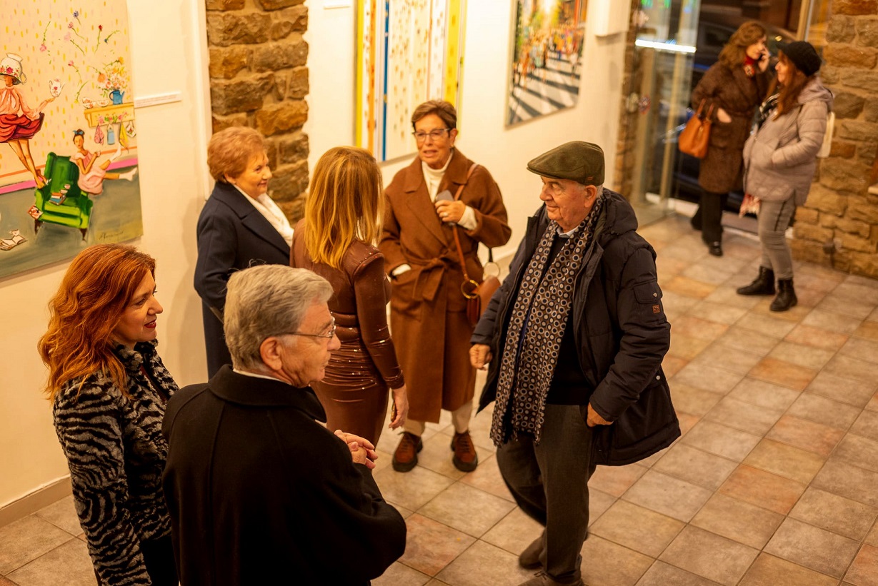 Ανθρώπινες φιγούρες, άντρες, γυναίκες, παιδιά, τοποθετηµένες στα περιβάλλοντα που ανήκουν, σε αστικά ή φυσικά περιβάλλοντα, σε περιβάλλοντα φτιαγµένα από µύθο κι ιστορία, σουρεαλισµό ή και ροµαντισµό ακόµα, γίνονται οι πρωταγωνιστές ενός ευφάνταστου ζωγραφικού θιάσου που για το τέλος σου αφήνει µια αίσθηση απαλή, σαν χάδι, µιας εποχής άλλης που την φιλοξενούµε µέσα µας• πολύτιµη βαθιά σαν νοσταλγία».