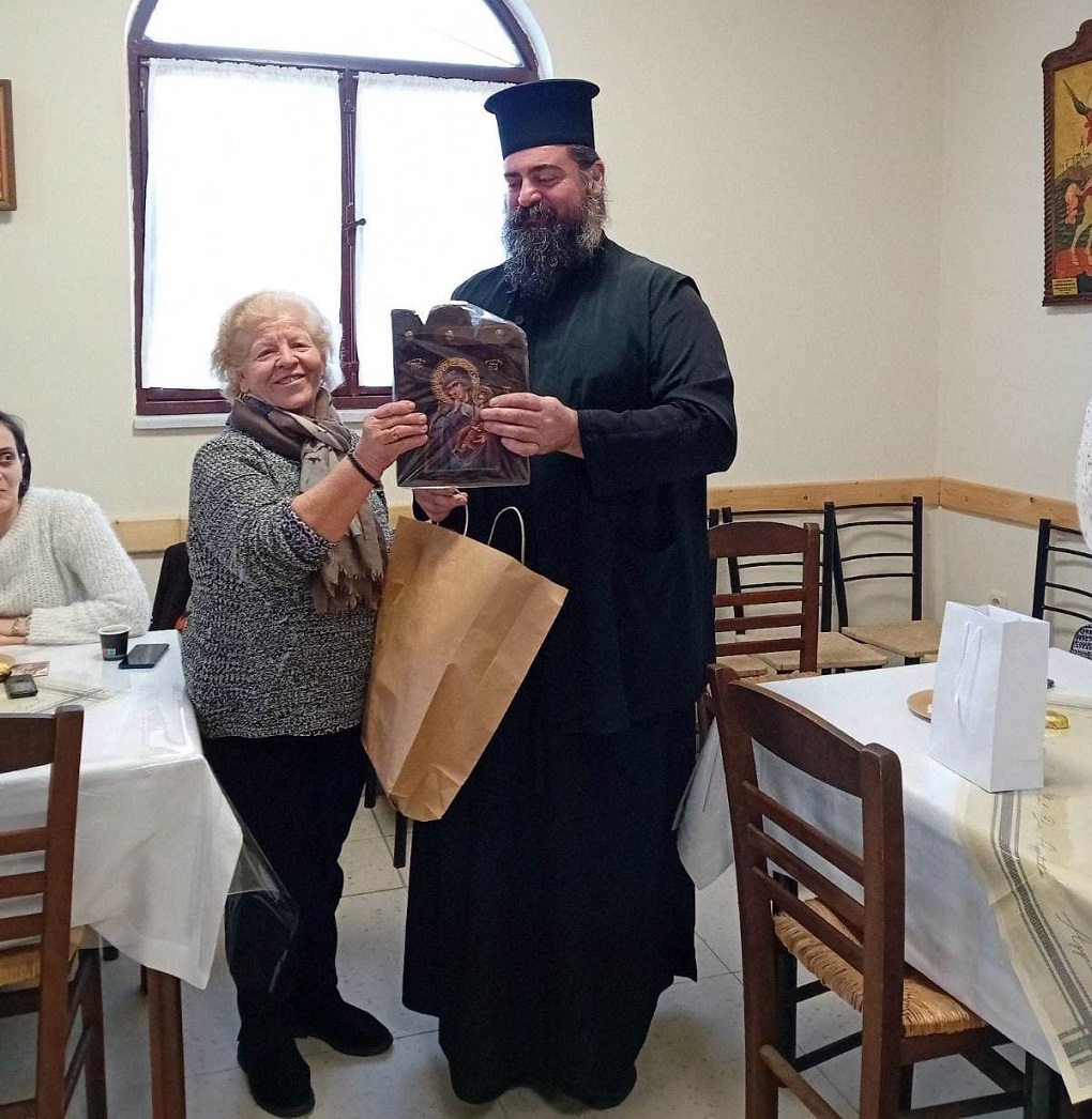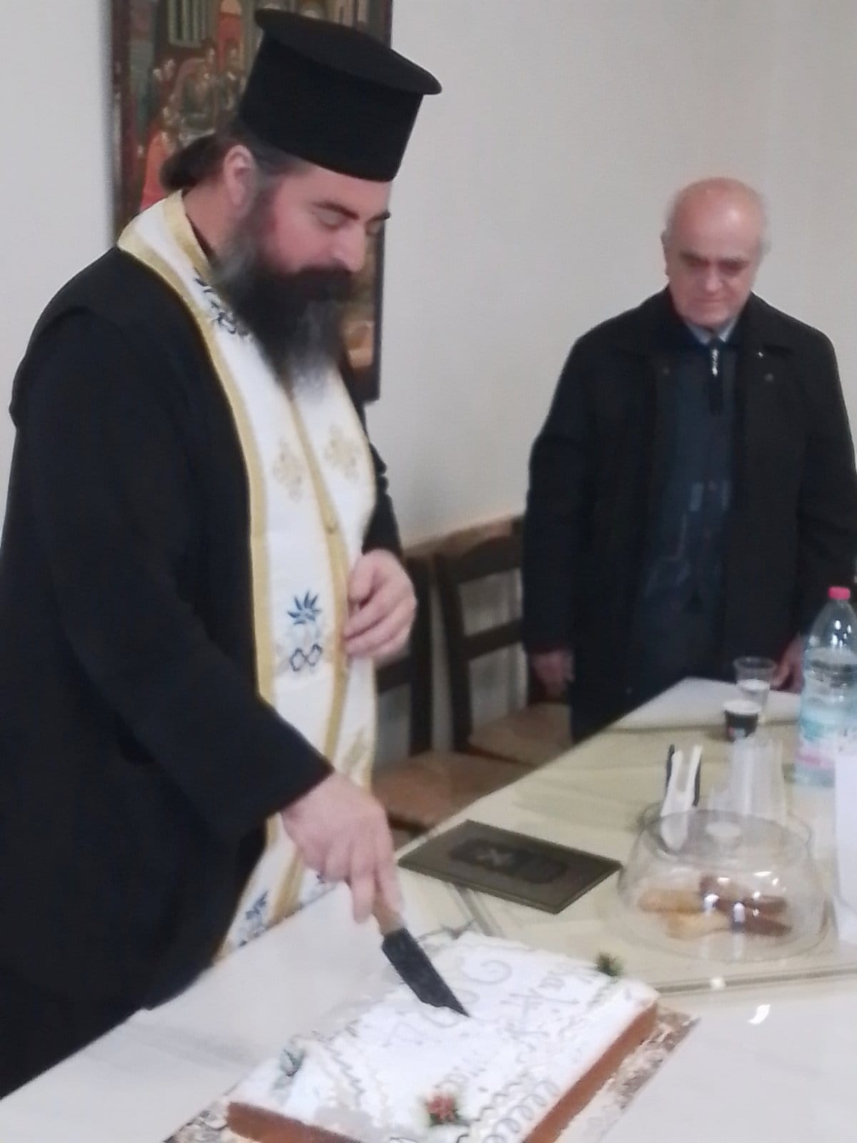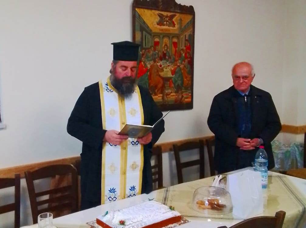 Την βασιλόπιτα ευλόγησε ο ιερέας π. Θεμιστοκλής Σωτηρόπουλος, ο οποίος υποδέχθηκε με ιδιαίτερη χαρά τα αγόρια και τα κορίτσια του χωριού που προσήλθαν, μίλησε μαζί τους, αντάλλαξε εορταστικές ευχές και τα ευχαρίστησε για την συμμετοχή τους στις νεανικές Κατηχητικές Συνάξεις της Ιεράς Μητροπόλεως. Επίσης ευχαρίστησε όλες τις κυρίες που συμμετέχουν στις δράσεις της ενορίας και ευχήθηκε Χρόνια Πολλά & Καλή και ευλογημένη χρονιά!