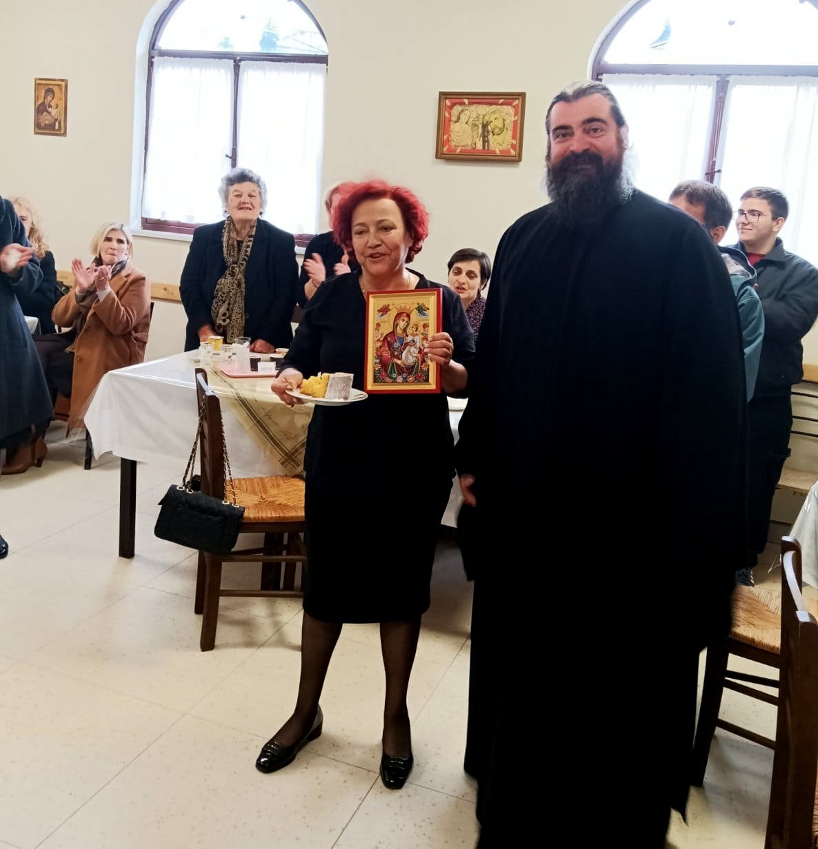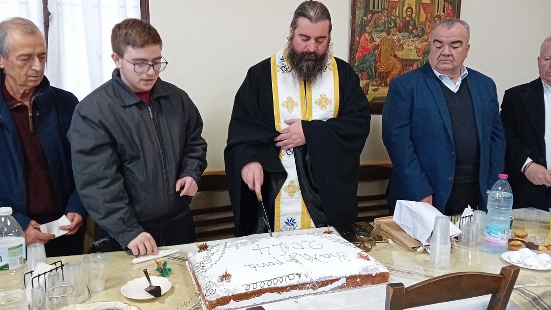 Όλοι οι παρευρισκόμενοι αντάλλαξαν εορταστικές ευχές, πήραν από ένα κομμάτι της βασιλόπιτας, ενώ το φλουρί κέρδισε η κυρία Διαμαντούλα Μήλα, με τον ιερέα να της προσφέρει και μια εικόνα της Παναγίας μας.