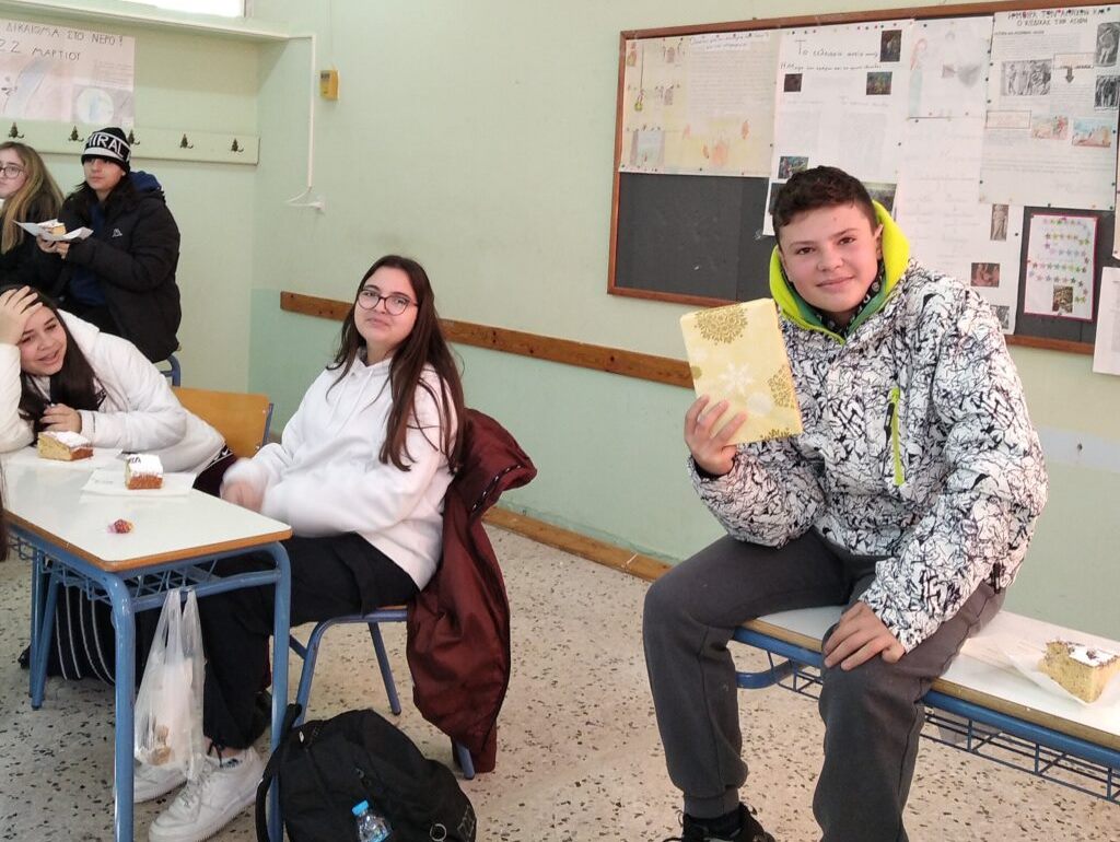 Στη συνέχεια έγινε κοπή πίτας για το νέο έτος. Ο μαθητής κάθε τάξης που βρήκε το φλουρί πήρε ως δώρο ένα λογοτεχνικό βιβλίο.