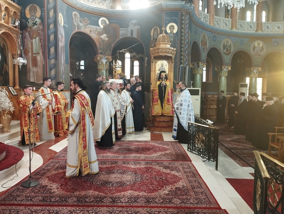 Αρχικά τελέσθηκε η ακολουθία του Αρχιερατικού Εσπερινού, χοροστατούντος του Σεβασμιώτατου Μητροπολίτου Αιτωλίας και Ακαρνανίας κ. Δαμασκηνού.