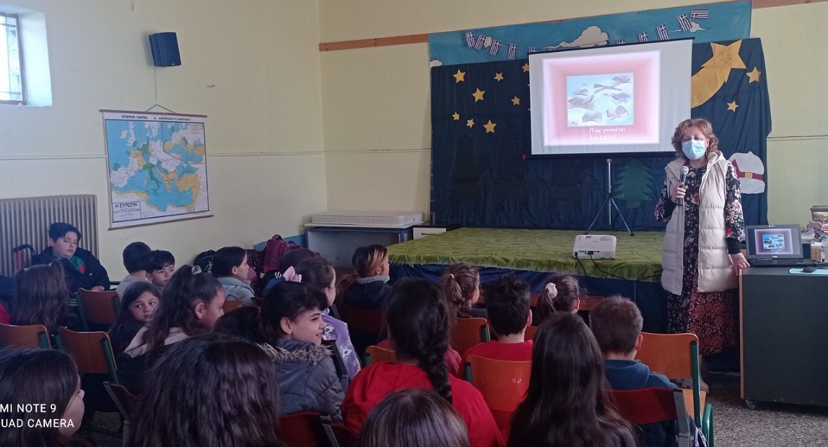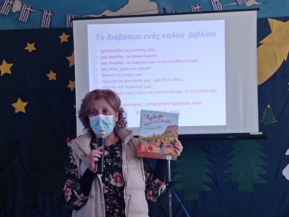 Η κ. Κάτσου παρουσίασε στα παιδιά τον τρόπο δημιουργίας ενός βιβλίου και συνομίλησε μαζί τους.