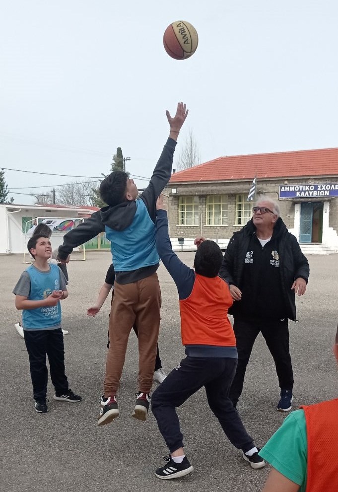 Η Ελληνική Ομοσπονδία Καλαθοσφαίρισης σημέρα Τρίτη 27 Φεβρουαρίου, υλοποίησε στο Δημοτικό Σχολείο Καλυβίων Αγρινίου το Εκπαιδευτικό Πρόγραμμα «Τρίποντα στα σχολεία», το οποίο απευθύνεται σε μαθητές και μαθήτριες Πρωτοβάθμιας Εκπαίδευσης Ε’ και Στ’ τάξεων του Δημοτικού σχολείου στην Ελλάδα, για το σχολικό έτος 2023-2024.