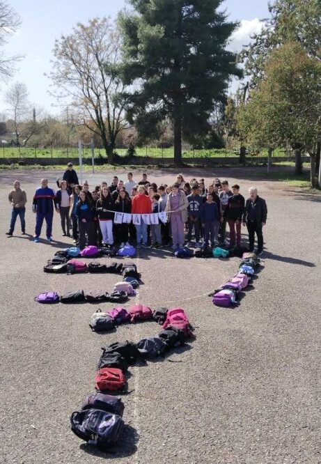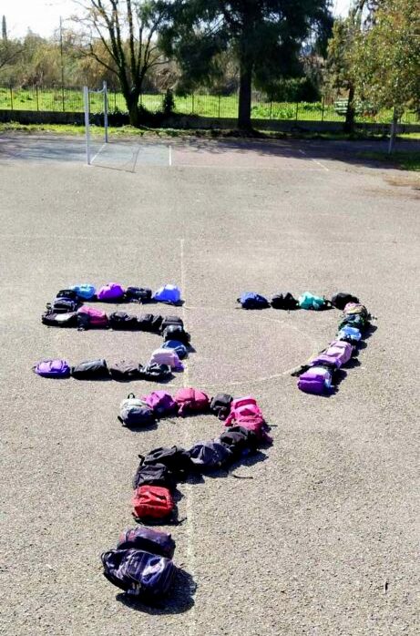 Στο τέλος του διδακτικού ωραρίου τα παιδιά στον προαύλιο χώρο σχημάτισαν με τις τσάντες τους τον αριθμό 57 με ένα ερωτηματικό, για τα θύματα που χάθηκαν άδικα προχωρώντας έτσι σε μία συμβολική διαμαρτυρία.