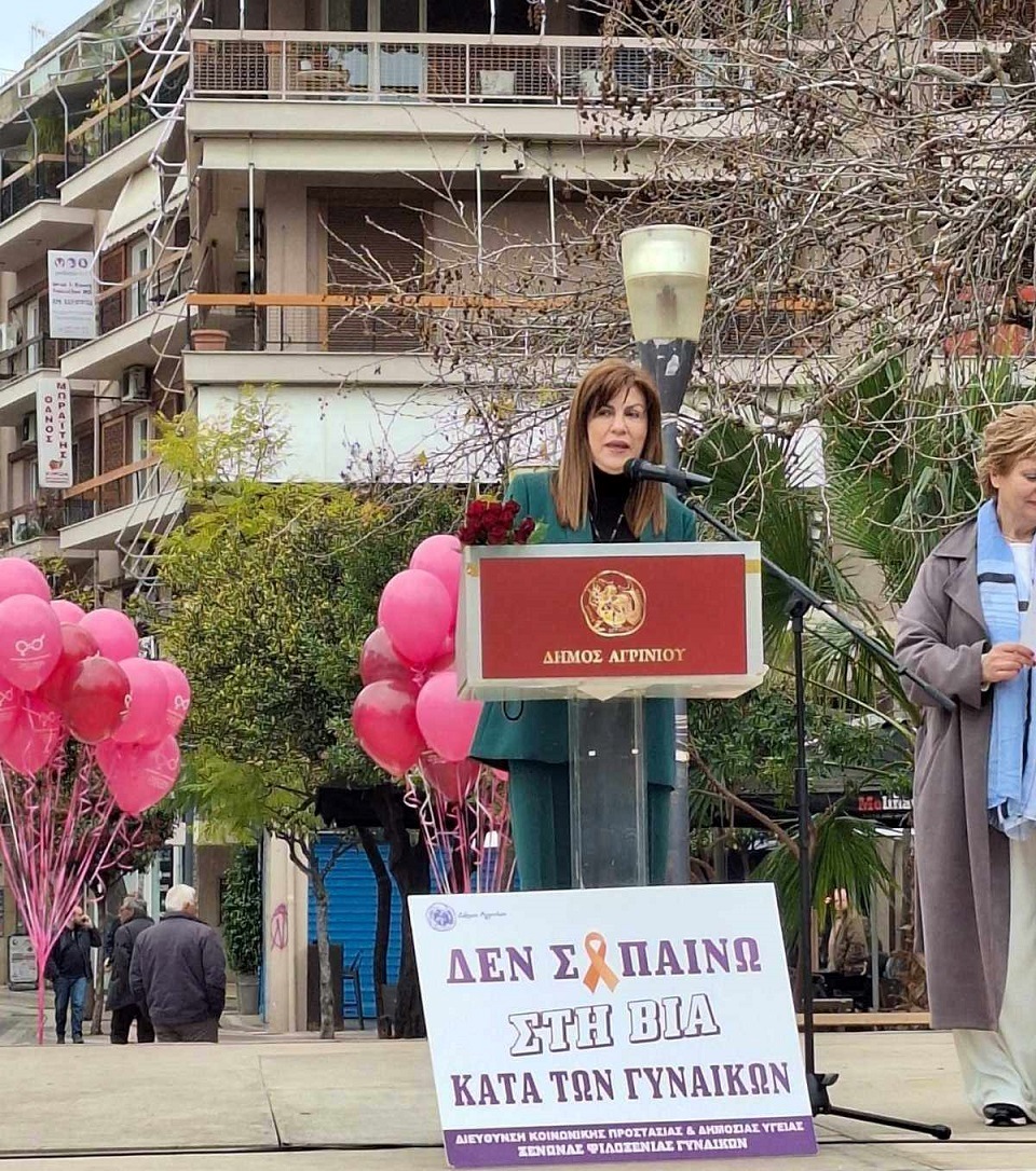 Σημαντική η παρουσία της εκπροσώπου της Περιφέρειας Δυτικής Ελλάδας, κας Βούλγαρη Αμαλίας, Περιφερειακής Συμβούλου, η οποία τόνισε τη σπουδαιότητα του εορτασμού της συγκεκριμένης ημέρας, καθώς και τη συμπόρευσή της στο δύσκολο αγώνα της εξάλειψης της έμφυλης βίας.