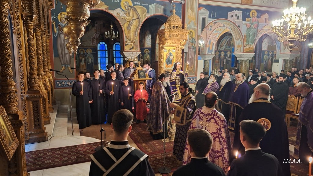 Μέσα σε κλίμα κατάνυξης τελέσθηκε η Ακολουθία του Α’ Κατανυκτικού Εσπερινού το απόγευμα της Κυριακής της Τυρινής, 17ης Μαρτίου 2024 στον Ιερό Μητροπολιτικό Ναό Ζωοδόχου Πηγής Αγρινίου, χοροστατούντος του Σεβασμιωτάτου Μητροπολίτου Αιτωλίας και Ακαρνανίας κ. Δαμασκηνού Συμμετείχε το σύνολο των Κληρικών της πόλεως και της ευρύτερης περιοχής του Αγρινίου και πλήθος πιστών.