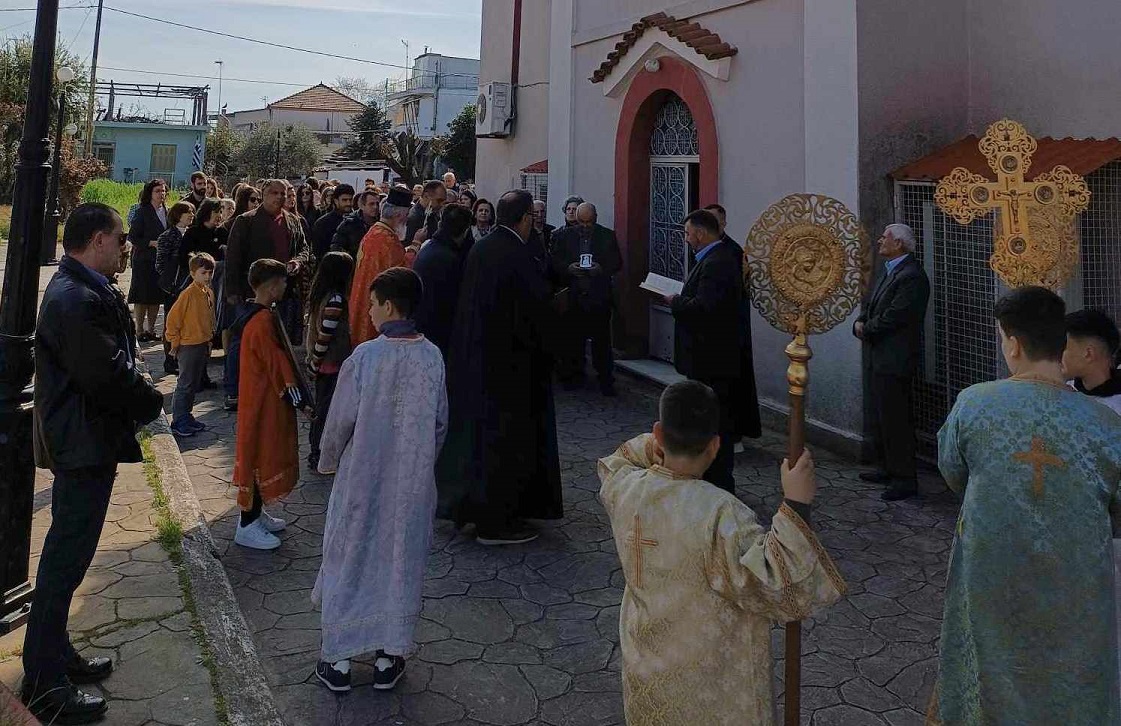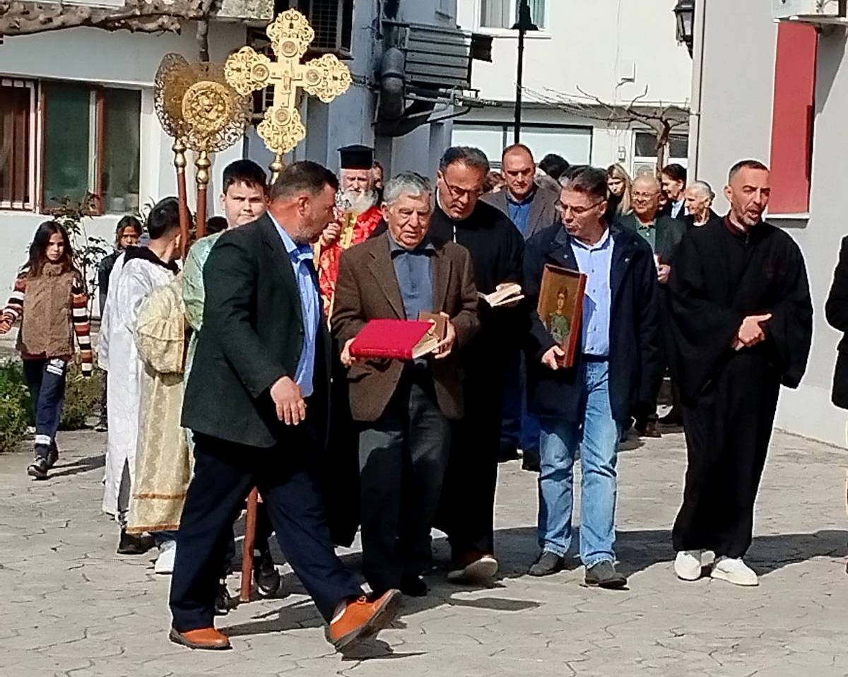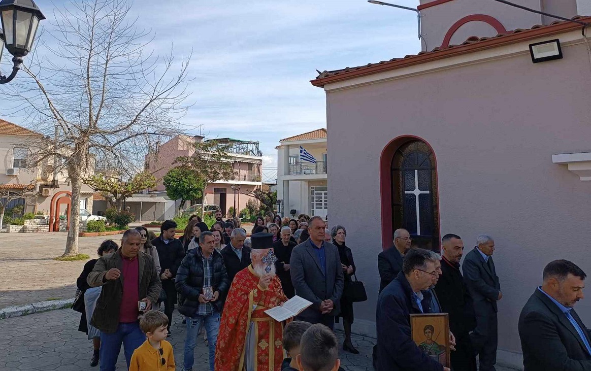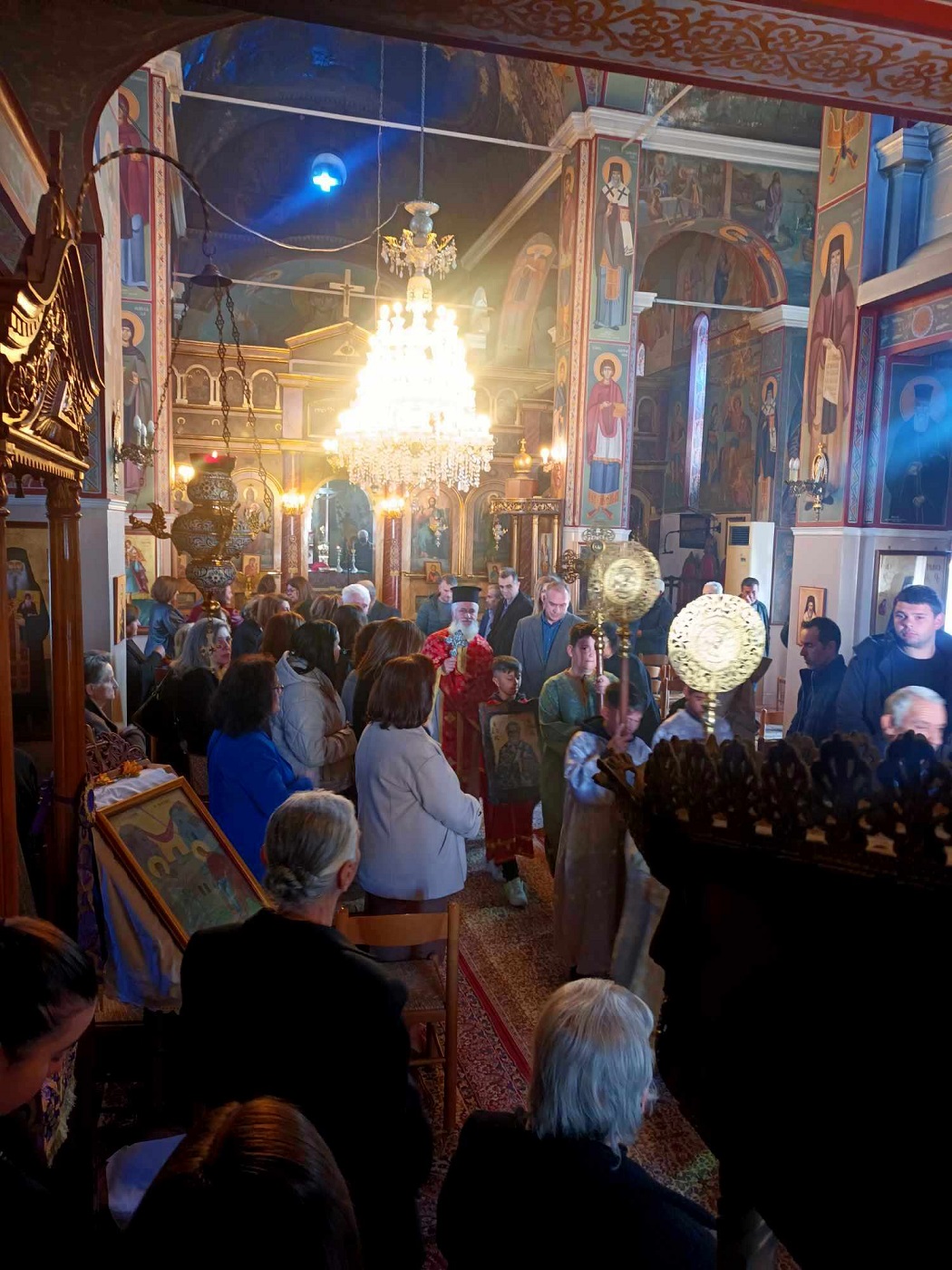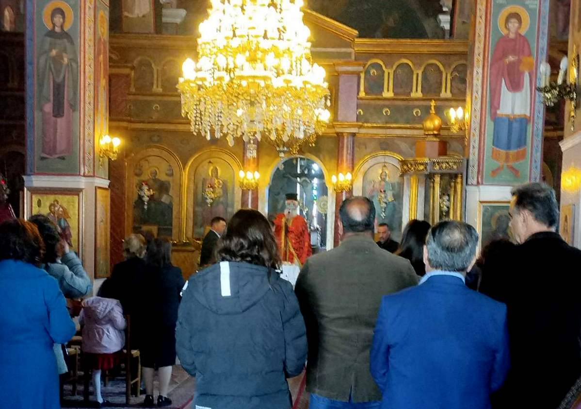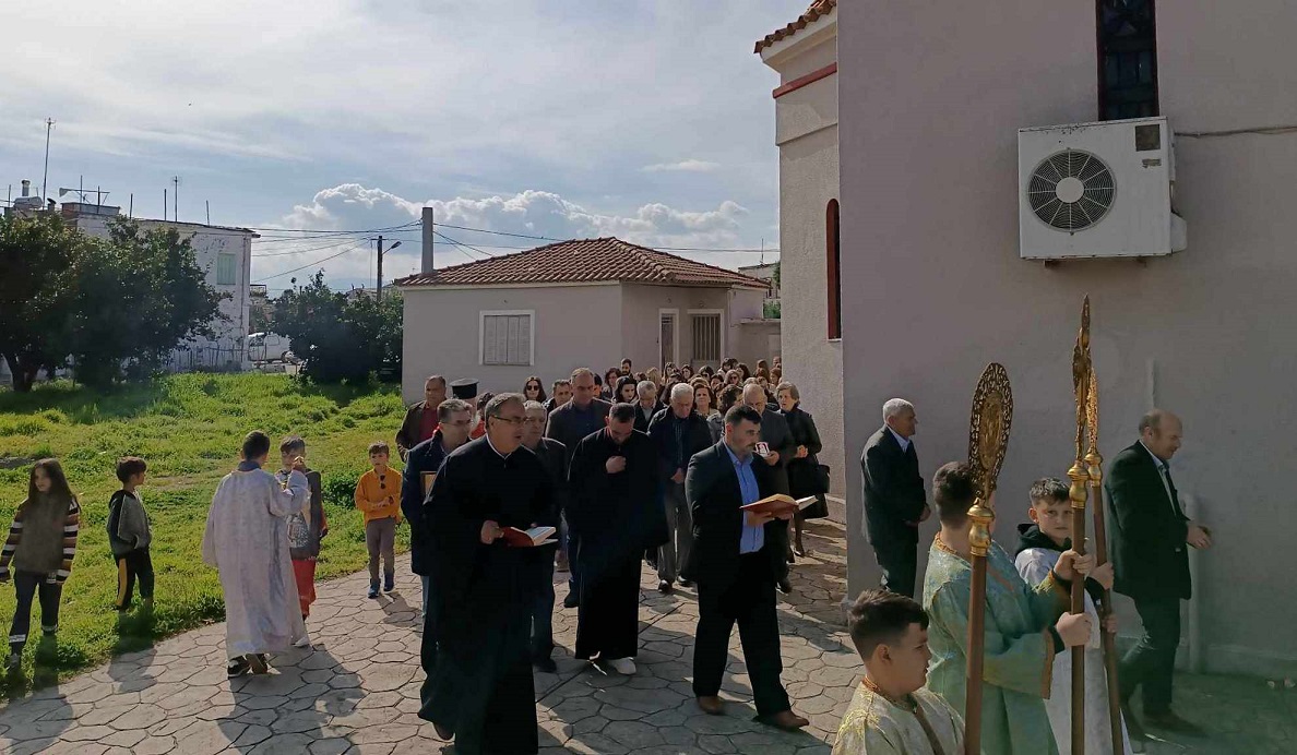 Ο πάτερ Θεοδόσιος Αθανασόπουλος, συνοδεία των ιεροψαλτών, των επιτρόπων του ναού και των πιστών που κρατούσαν τις εικόνες που έφεραν από τα σπίτια τους, έκαναν την περιφορά τους πέριξ του ναού, όπου διαβάστηκαν παρακλήσεις και ύμνοι για τη σημερινή εορτή της Ορθοδοξίας.