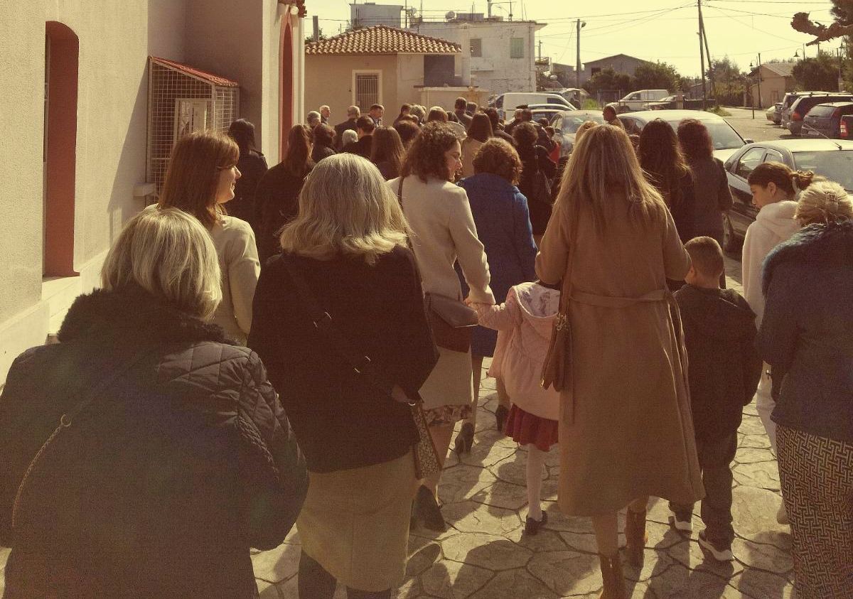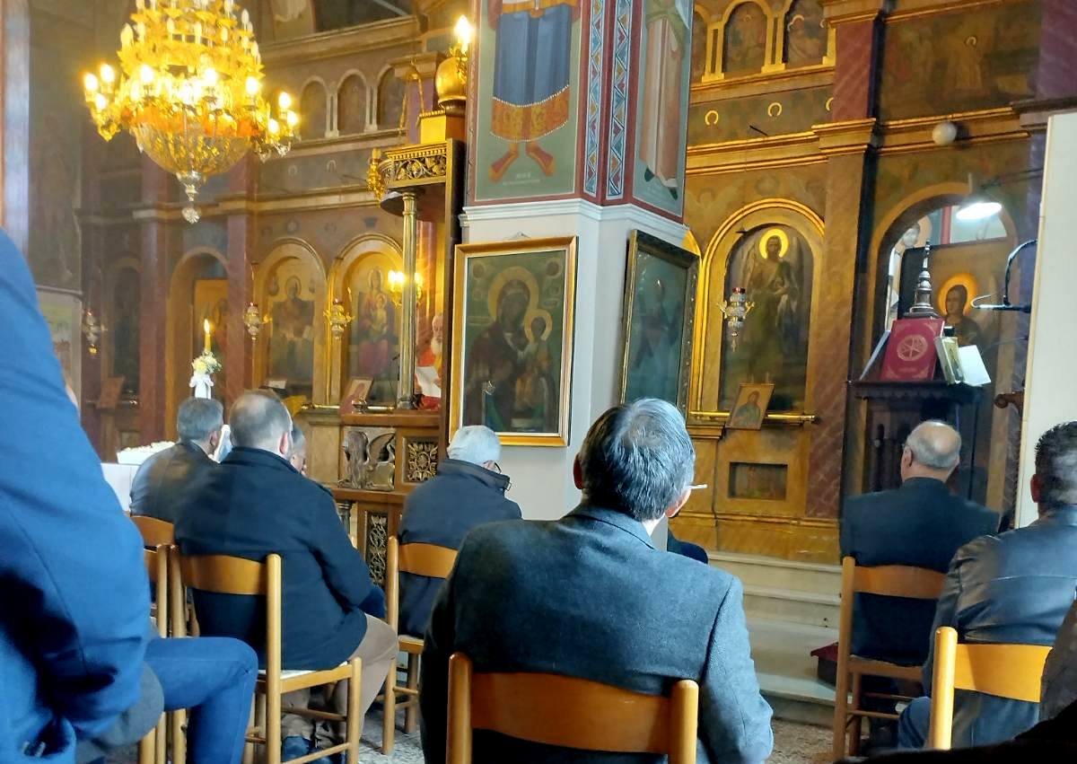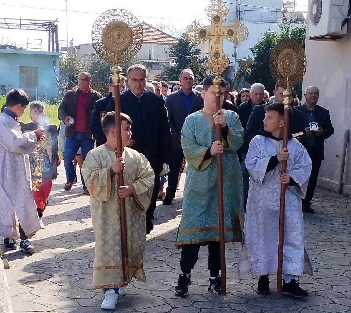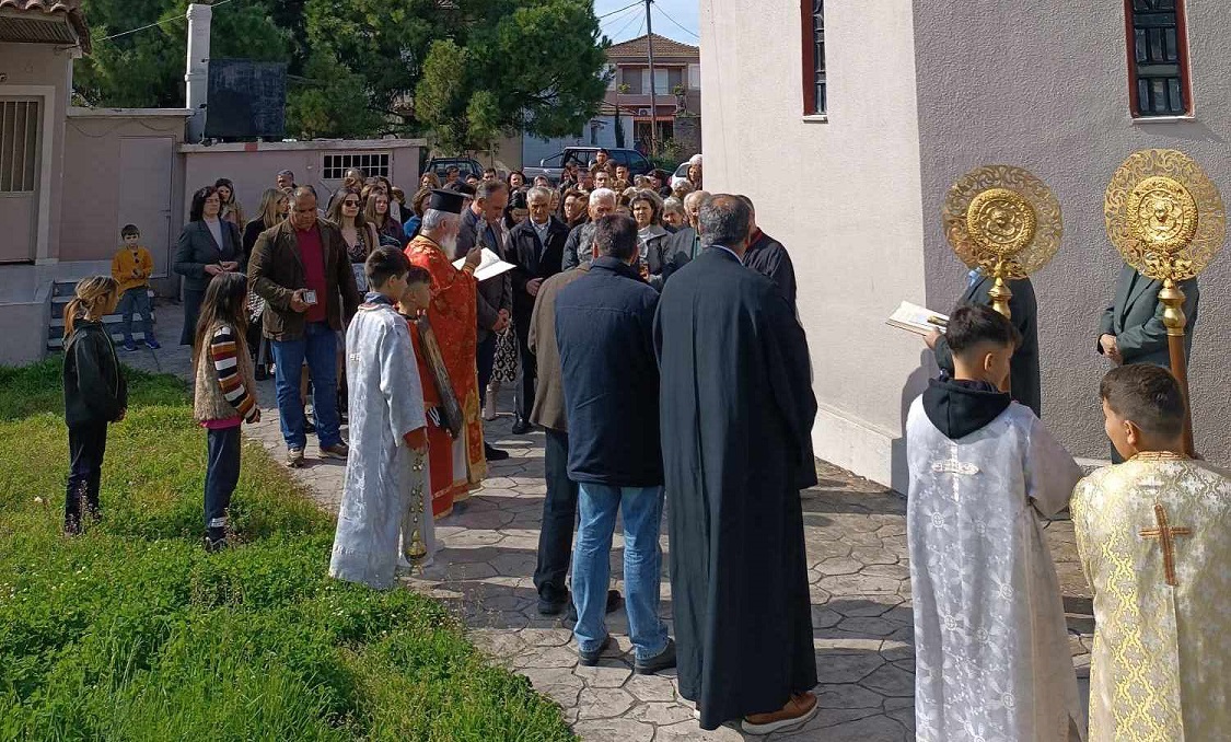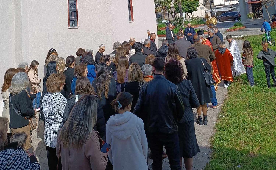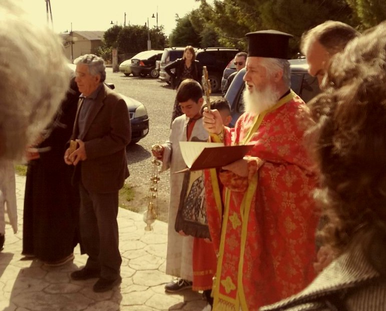 Ο πάτερ Θεοδόσιος Αθανασόπουλος, συνοδεία των ιεροψαλτών, των επιτρόπων του ναού και των πιστών που κρατούσαν τις εικόνες που έφεραν από τα σπίτια τους, έκαναν την περιφορά τους πέριξ του ναού, όπου διαβάστηκαν παρακλήσεις και ύμνοι για τη σημερινή εορτή της Ορθοδοξίας.