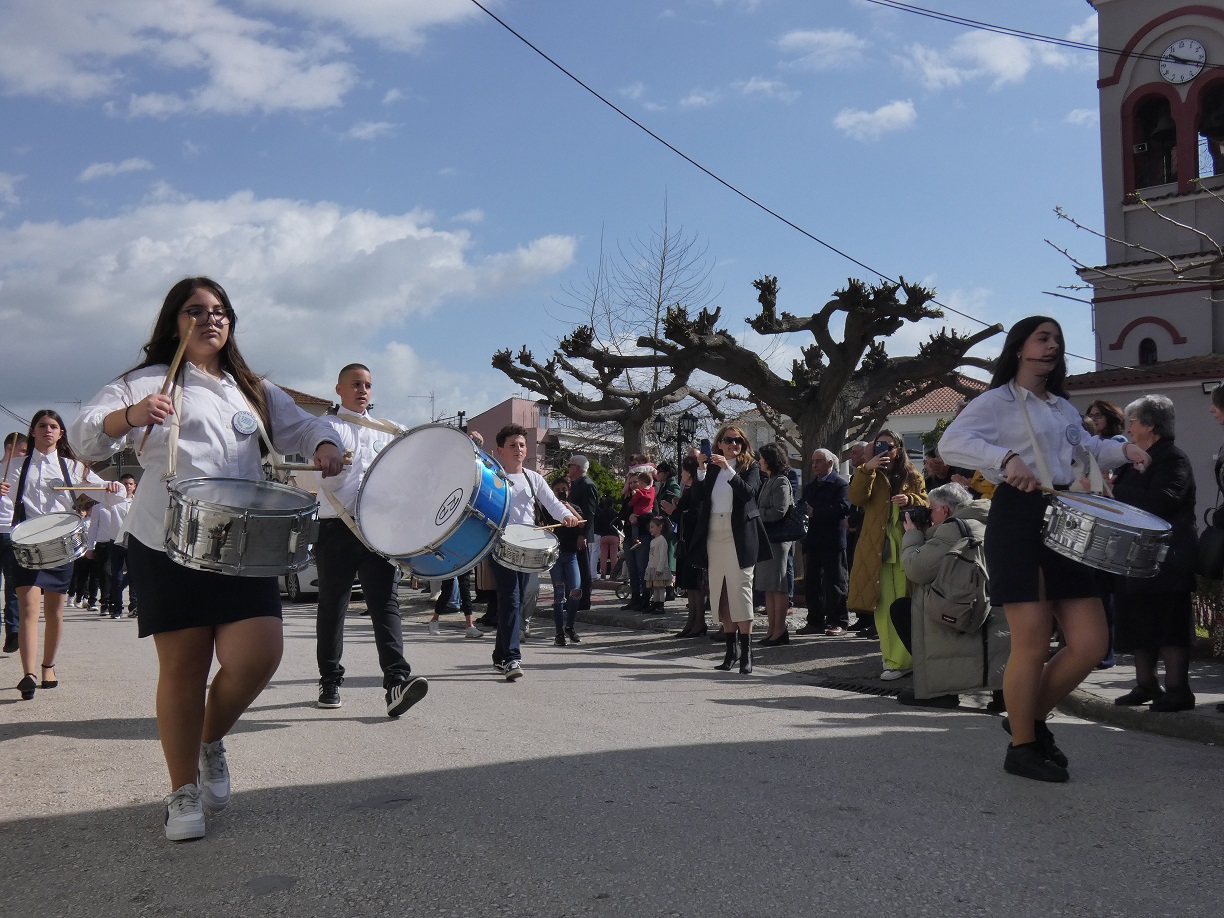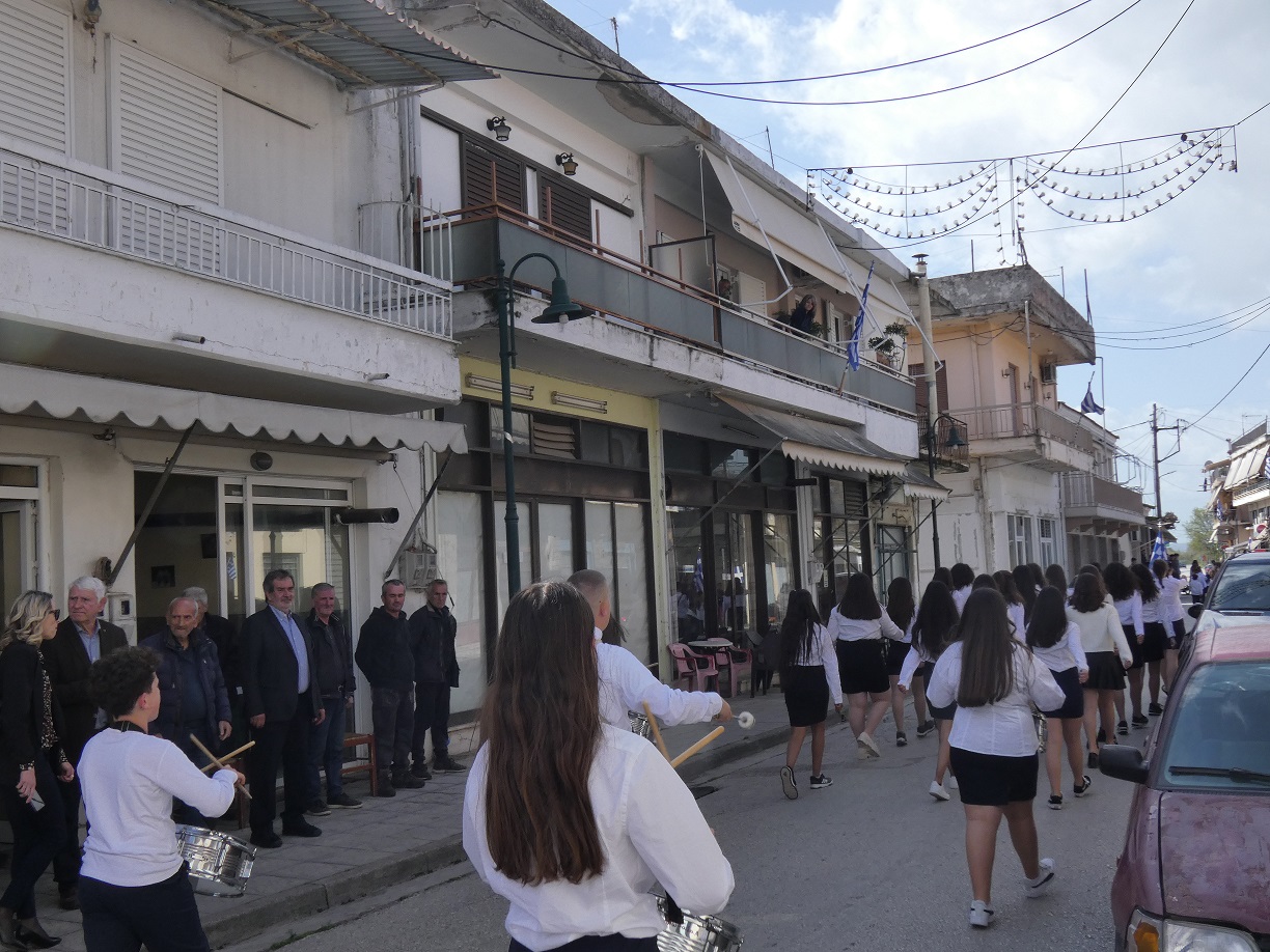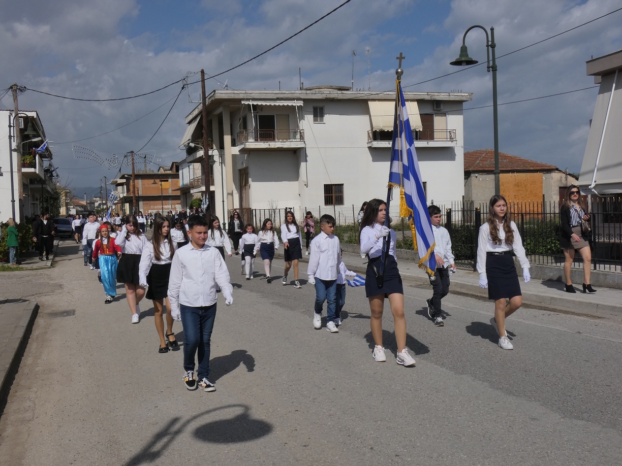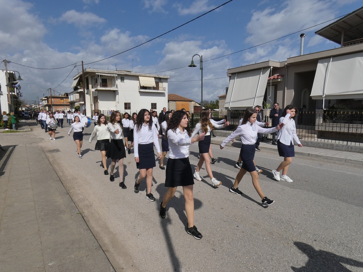 Αμέσως μετά, στους κεντρικούς δρόμους του χωριού μας, οι κάτοικοι παρακολούθησαν και χειροκρότησαν την παρέλαση των μαθητών του Νηπιαγωγείου, του Δημοτικού Σχολείου και του Γυμνασίου Καλυβίων, για να ολοκληρωθεί η πορεία στο Μνημείο των Πεσόντων, όπου τελέσθηκε η επιμνημόσυνη δέηση για τους πεσόντες υπέρ Πατρίδος.