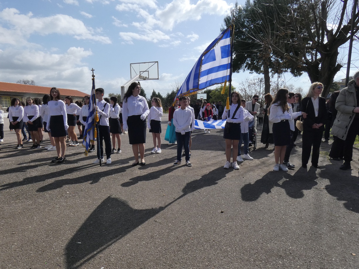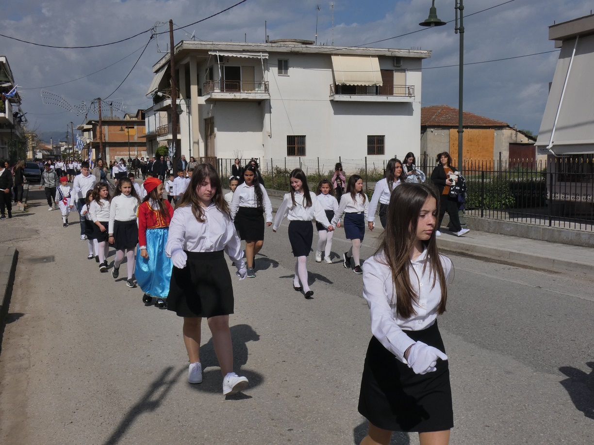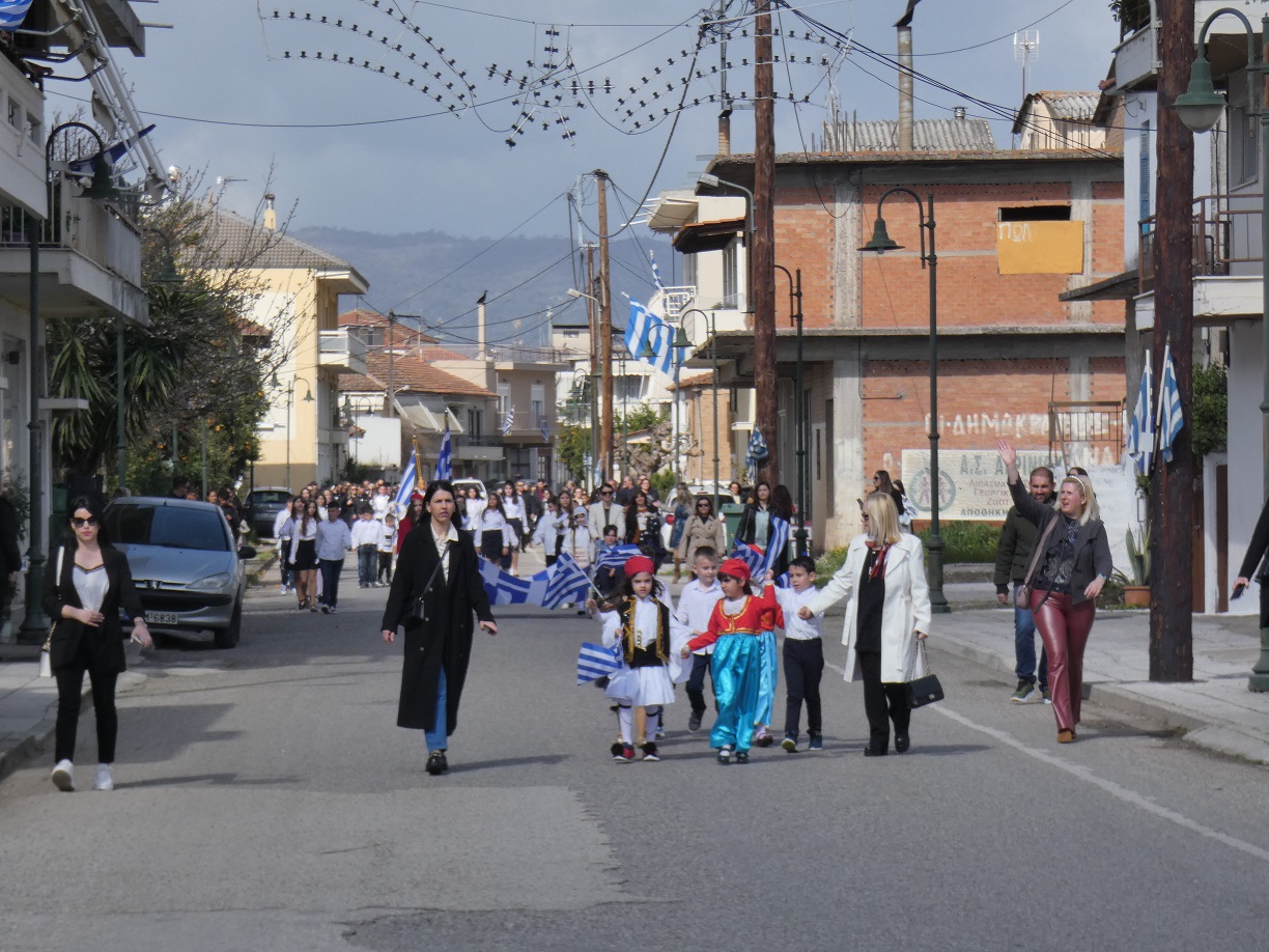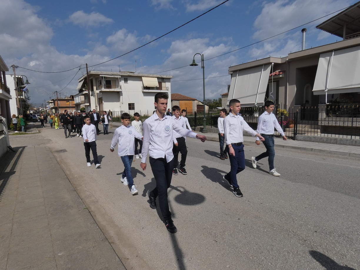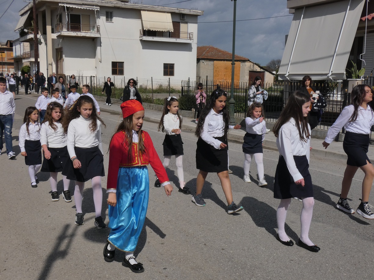Αμέσως μετά, στους κεντρικούς δρόμους του χωριού μας, οι κάτοικοι παρακολούθησαν και χειροκρότησαν την παρέλαση των μαθητών του Νηπιαγωγείου, του Δημοτικού Σχολείου και του Γυμνασίου Καλυβίων, για να ολοκληρωθεί η πορεία στο Μνημείο των Πεσόντων, όπου τελέσθηκε η επιμνημόσυνη δέηση για τους πεσόντες υπέρ Πατρίδος.