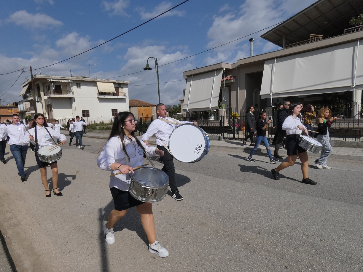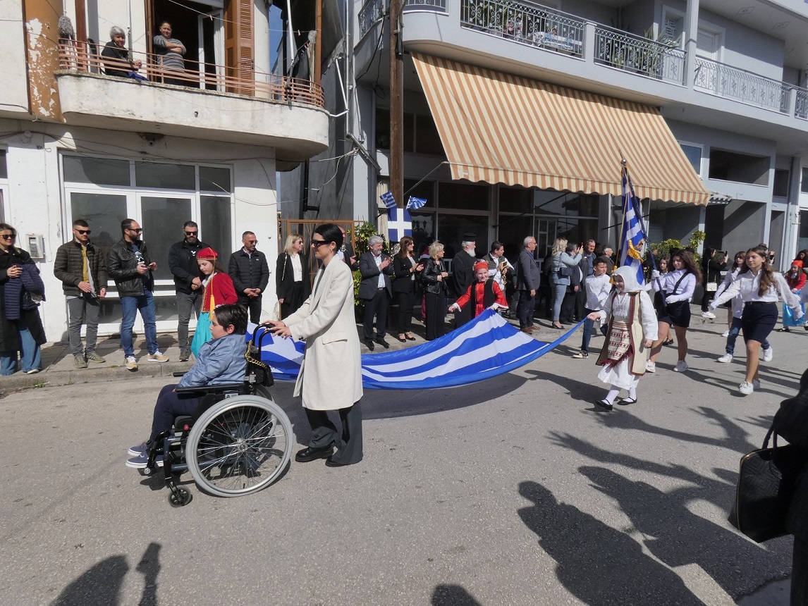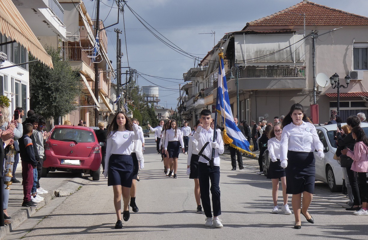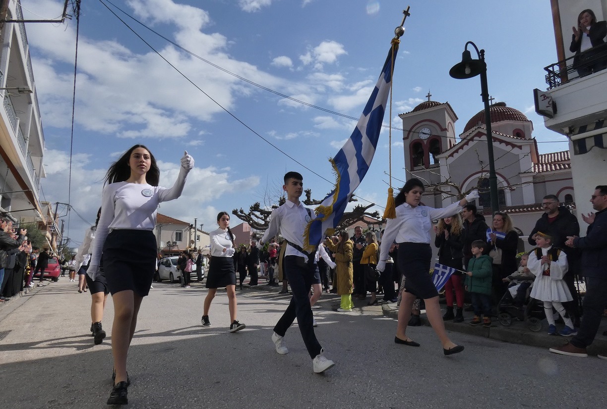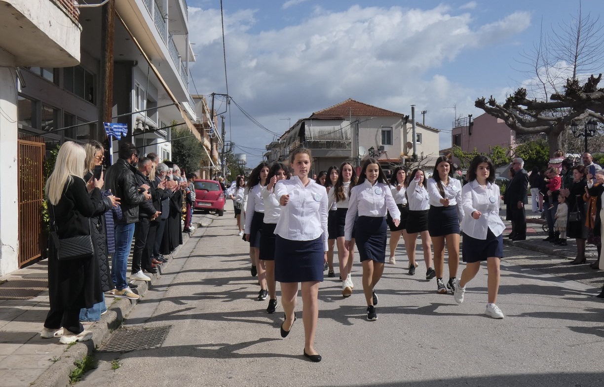 Αμέσως μετά, στους κεντρικούς δρόμους του χωριού μας, οι κάτοικοι παρακολούθησαν και χειροκρότησαν την παρέλαση των μαθητών του Νηπιαγωγείου, του Δημοτικού Σχολείου και του Γυμνασίου Καλυβίων, για να ολοκληρωθεί η πορεία στο Μνημείο των Πεσόντων, όπου τελέσθηκε η επιμνημόσυνη δέηση για τους πεσόντες υπέρ Πατρίδος.