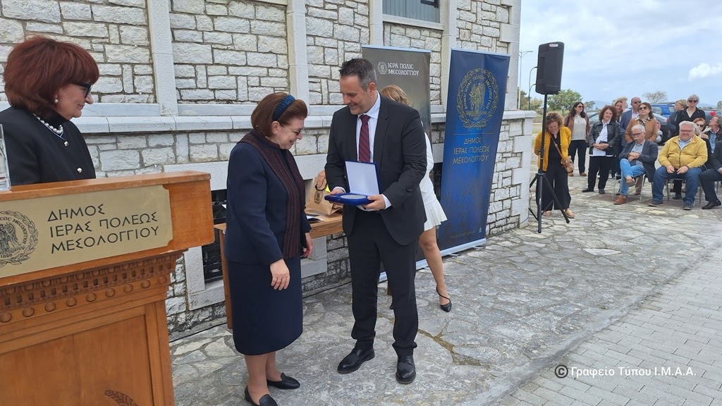 Κατακλείοντας τον σύντομο χαιρετισμό μου, εύχομαι καλή επιτυχία στις εκθέσεις που εγκαινιάζονται σήμερα με την φροντίδα της Βυρωνικής Εταιρείας, σε αυτό τον μοναδικό χώρο, τον ταυτισμένο με την αγάπη των Μεσολογγιτών προς το πρόσωπο και την μνήμη του αξεπέραστου Φιλέλληνα Λόρδου Βύρωνος, που εφέτος συμπληρώνονται διακόσια (200) χρόνια από τον θάνατό του, σας εύχομαι επίσης Καλή Μεγάλη Εβδομάδα και να εορτάσουμε πανευφρόσυνα το Άγιο Πάσχα και την ένδοξη Ανάσταση του Κυρίου μας».