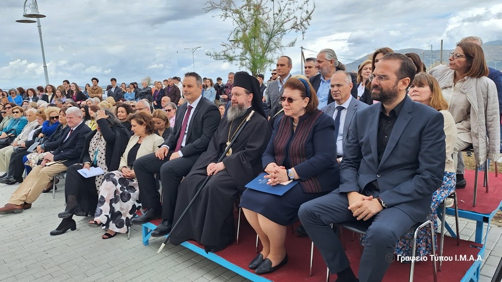 Επιτρέψτε μου, ιδιαιτέρως να εκφράσω τις ευχαριστίες της τοπικής μας Εκκλησίας προς την Υπουργό Πολιτισμού, ερίτιμη κα Λίνα Μενδώνη, η οποία εμπράκτως στάθηκε αρωγός στην προσπάθεια αποκαταστάσεως του ιστορικού Επισκοπείου της Ιεράς μας Μητροπόλεως, ώστε να διατηρηθεί στις επόμενες γενιές ως ένα δείγμα άρτιας αρχιτεκτονικής των αρχών του 20ου αιώνος, αλλά και της εκκλησιαστικής τέχνης.