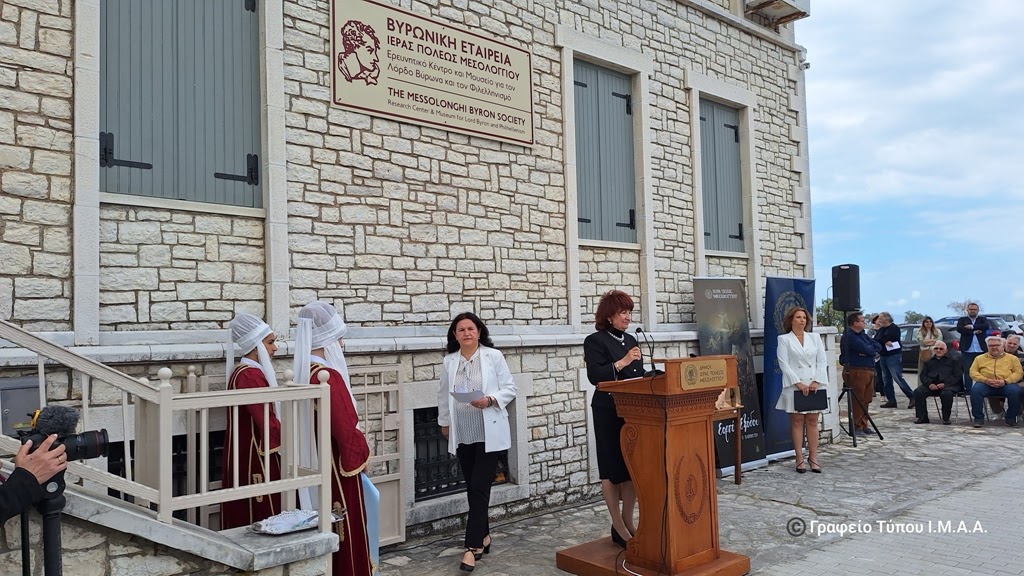 Τα Εγκαίνια της Μουσειακής Έκθεσης της Βυρωνικής Εταιρείας και του Εθνικού Ιστορικού Μουσείου: «Η ζωή και το έργο του Λόρδου Βύρωνα – Η Σχέση του με την Ελλάδα και το Φιλελληνικό Κίνημα» πραγματοποιήθηκαν στην Ιερά Πόλη Μεσολογγίου, την Παρασκευή 19 Απριλίου 2024, από την Υπουργό Πολιτισμού κα Λίνα Μενδώνη.