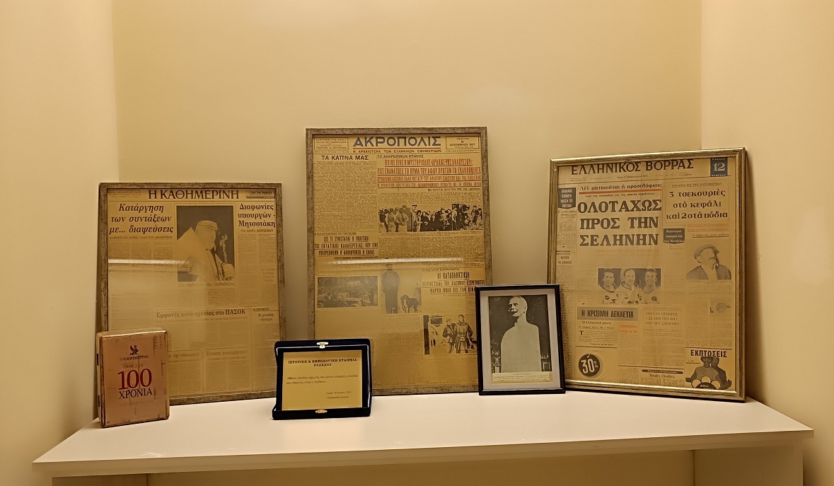 Παράλληλα, λειτουργεί και έκθεση πρωτοσέλιδων εφημερίδων στον Εκθεσιακό Χώρο του Παπαστρατείου Μεγάρου. Οι επισκέπτες θα έχουν τη δυνατότητα να δουν πρωτοσέλιδα που έγραψαν ιστορία στον τοπικό, αθηναϊκό και διεθνή Τύπο. Την έκθεση έχει επιμεληθεί ο κ. Βλάσης Αλμπάνης ενώ τεχνική υποστήριξη παρέχει ο Δημοτικός Υπάλληλος κ. Μιλτιάδης Γρηγορόπουλος.