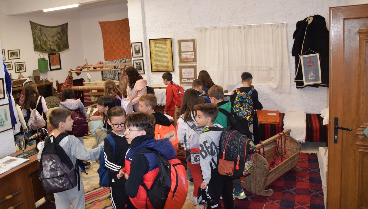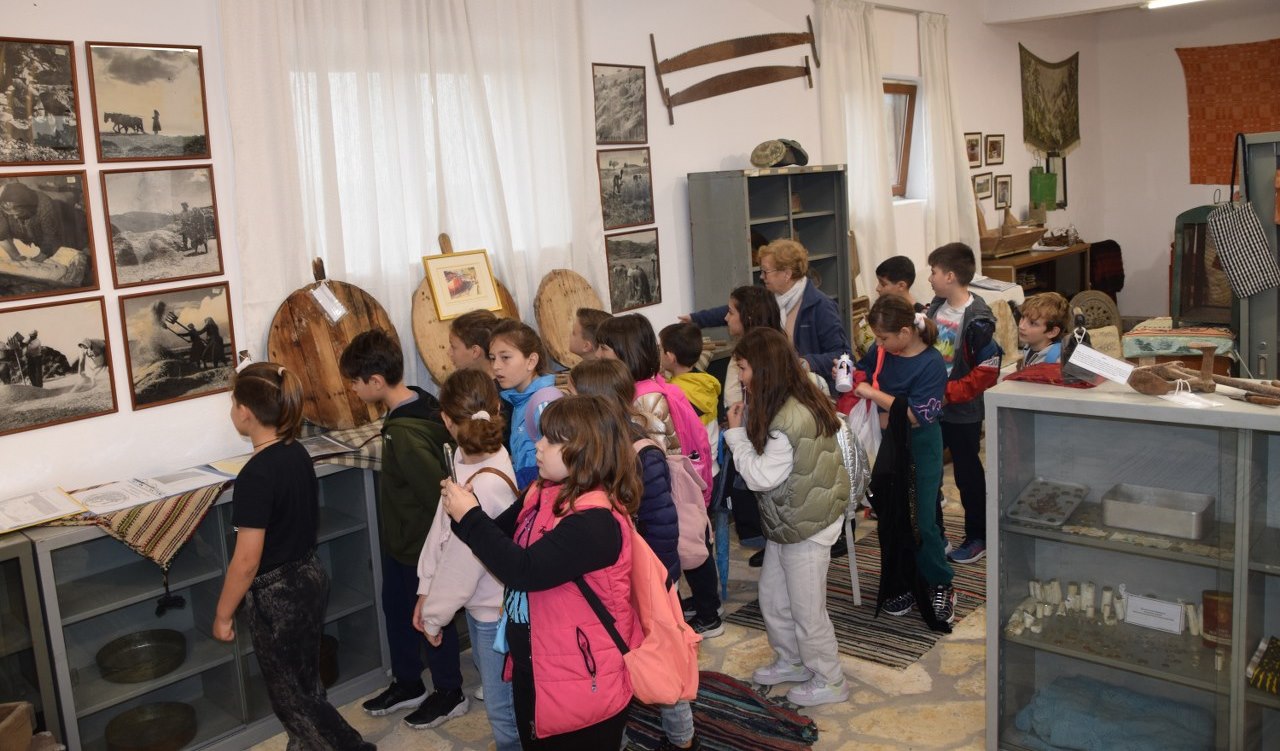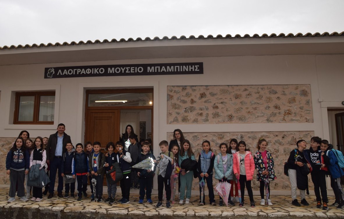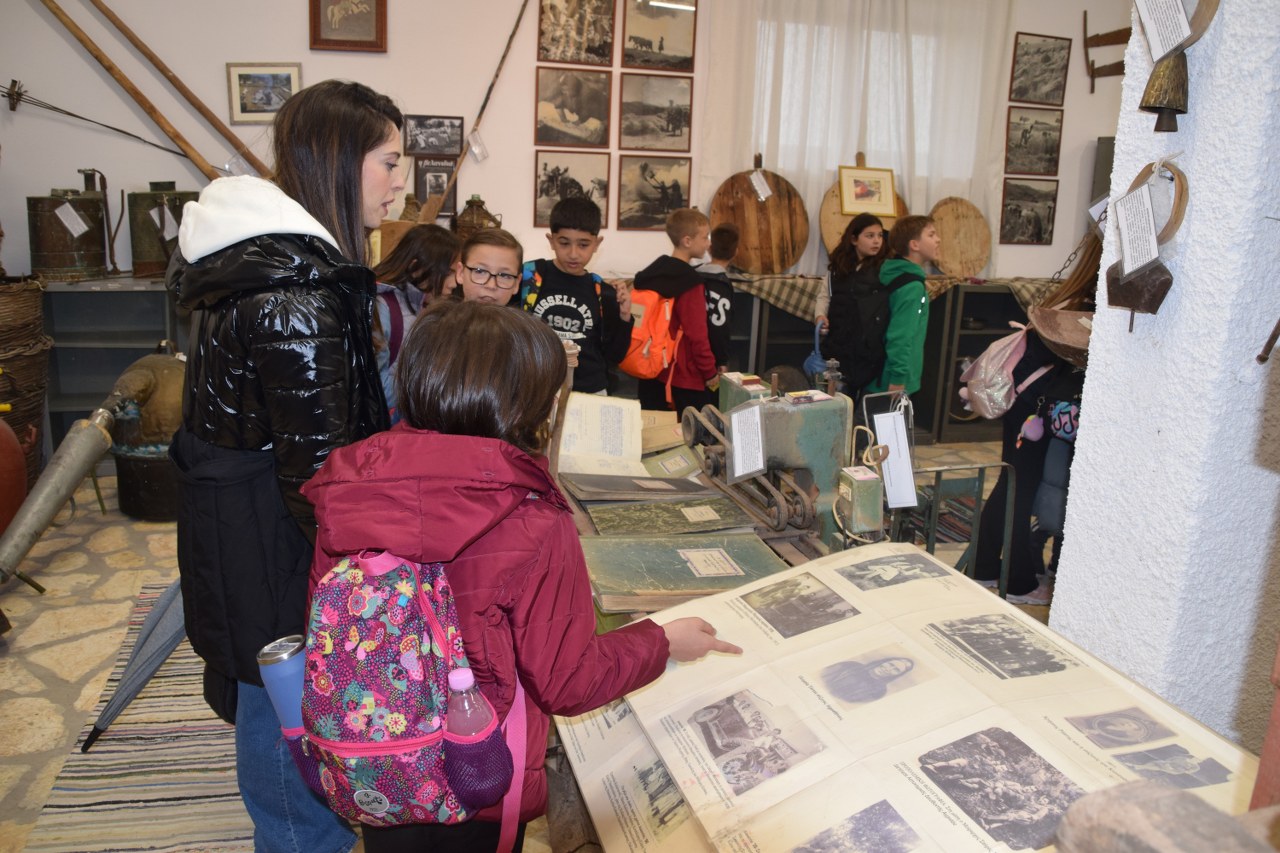 Κατόπιν, οι μαθητές περιηγήθηκαν στο Λαογραφικό Μουσείο, όπου ξεναγήθηκαν από τον Καθηγητή ΕΚΠΑ, κ. Γιώργο Μπαρμπαρούση, εντυπωσιάστηκαν από τα εκθέματα και διατύπωσαν ερωτήσεις σχετικά με τις τοπικές ασχολίες των κατοίκων.