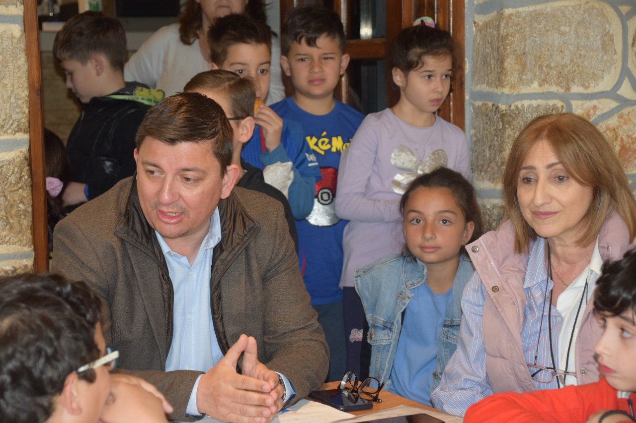 Στη συνέχεια πήγαν στο Δημοτικό Σχολείο Μπαμπίνης και συζήτησαν με την δασκάλα κα Ελεάνα Γιαννάκη και τους μαθητές, για τον τρόπο διδασκαλίας.
