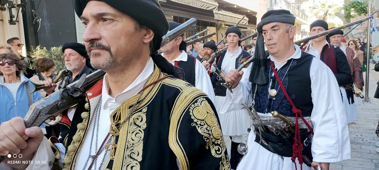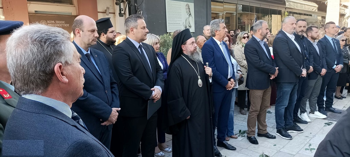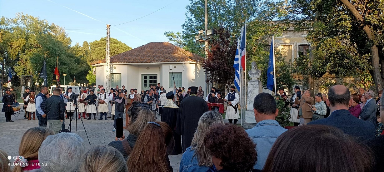 Εκεί, μπροστά στην προτομή του Αρχηγού, αποδόθηκαν τιμές με καταθέσεις στεφάνων και ομιλία από τον κ. Κωνσταντίνο Τζαβέλλα, απόγονο της ομώνυμης οικογένειας.