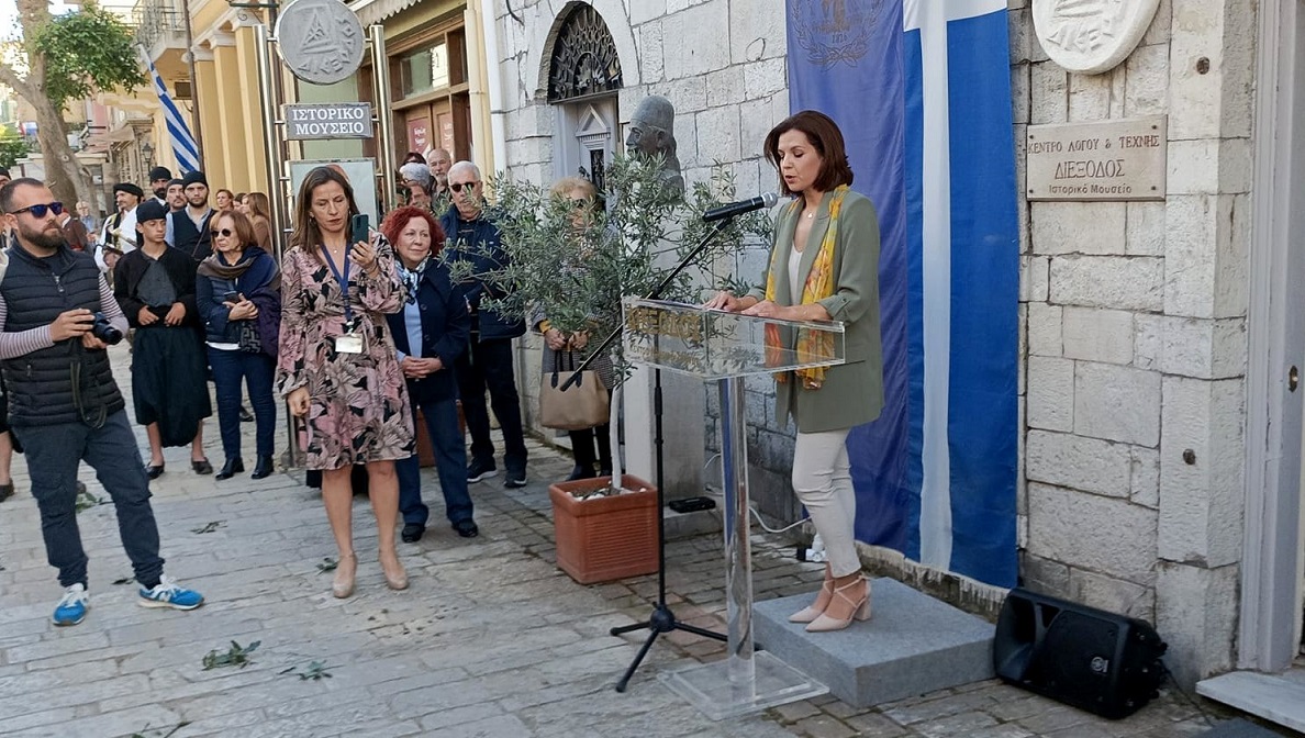 Εν συνεχεία, η πομπή με τη συνοδεία της Φιλαρμονικής «Διονύσιος Σολωμός» κατευθύνθηκαν στον Κήπο των Ηρώων όπου τελέστηκε επιμνημόσυνη δέηση από τον Μητροπολίτη κ. Δαμασκηνό.