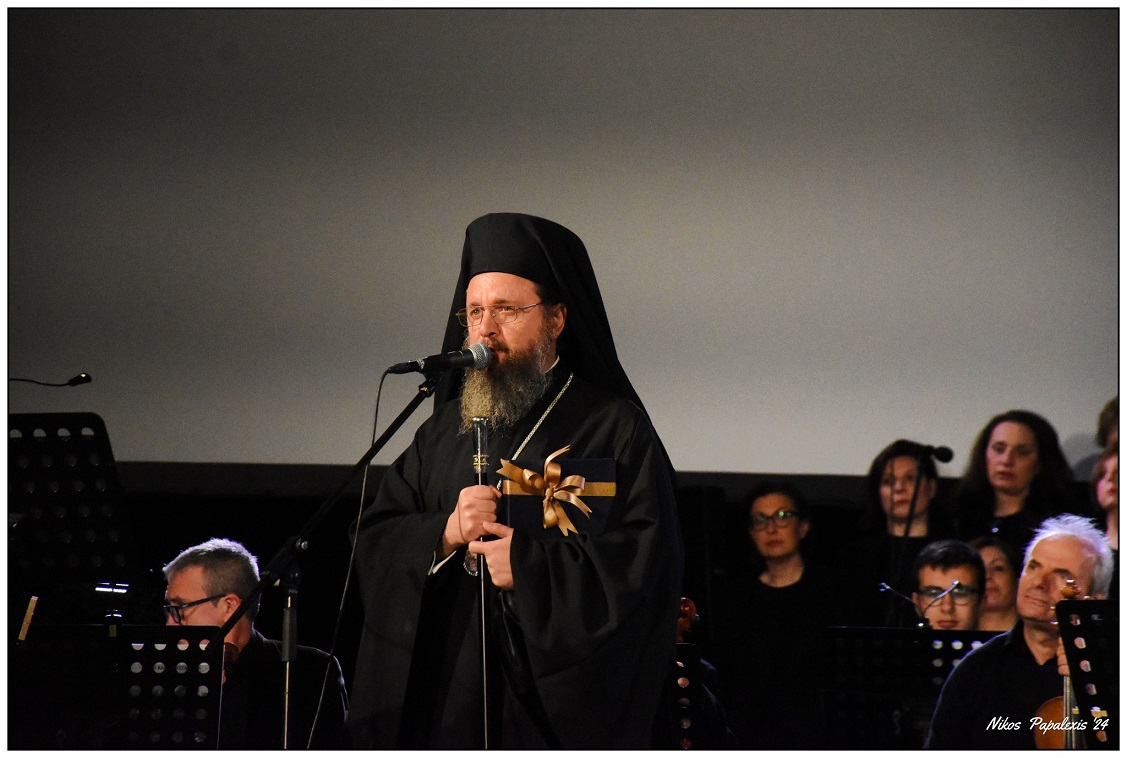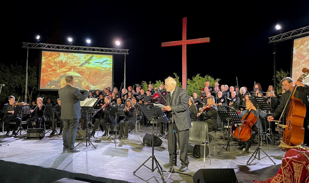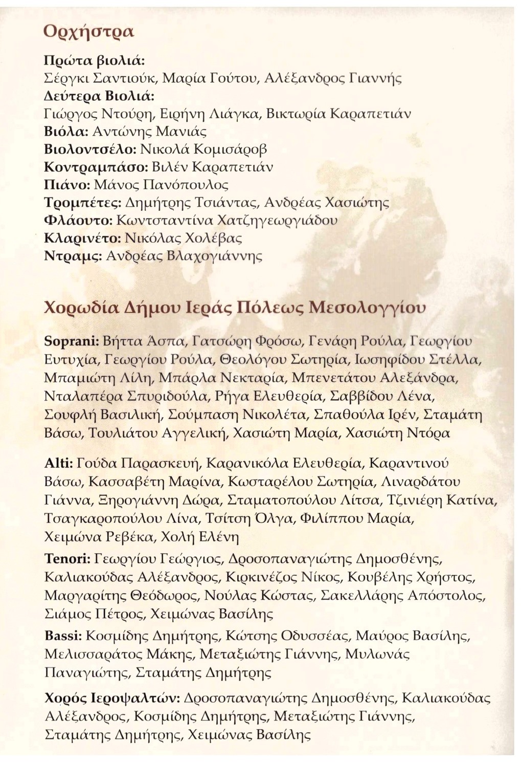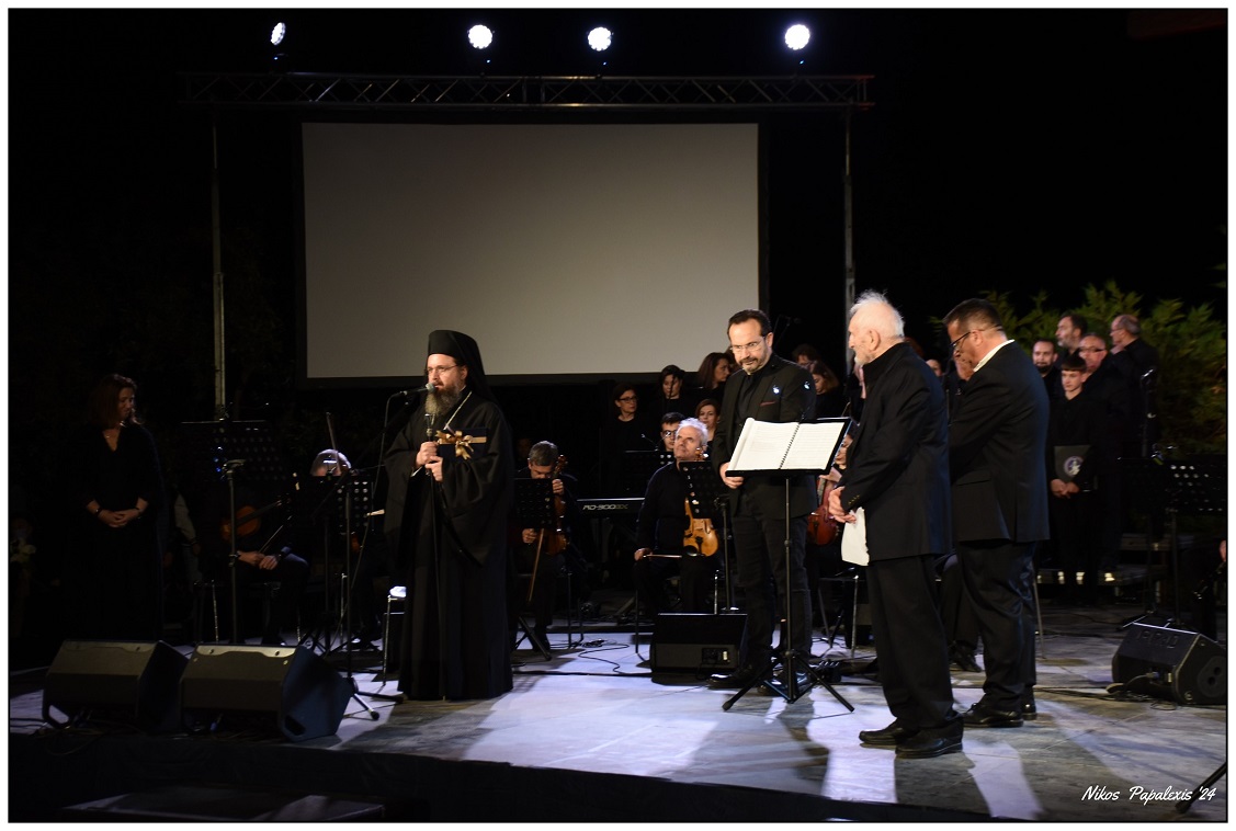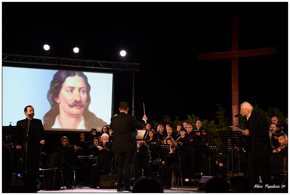 Πολύς κόσμος παρακολούθησε την χθεσινοβραδυνή υπέροχη μουσικο-αφηγηματική εκδήλωση, εμπλουτισμένη με πολυμέσα υπό τον τίτλο: «Ράσο και Φουστανέλα - Για του Χριστού την Πίστη την Αγία και της Πατρίδος την Ελευθερία» στον αύλειο χώρο του Μητροπολιτικού Μεγάρου (Δεσποτικό), με συμφωνική ορχήστρα και την Χορωδία του Δήμου Ι.Π. Μεσολογγίου, υπό την διεύθυνση του κ. Σπύρου Χολέβα.
