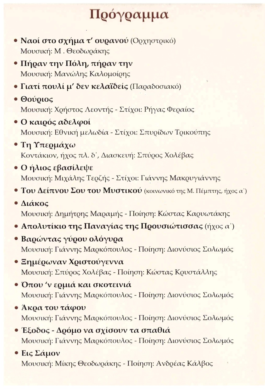 Την καλλιτεχνική επιμέλεια όλης της εκδήλωσης είχε ο κ. Σπύρος Χολέβας.