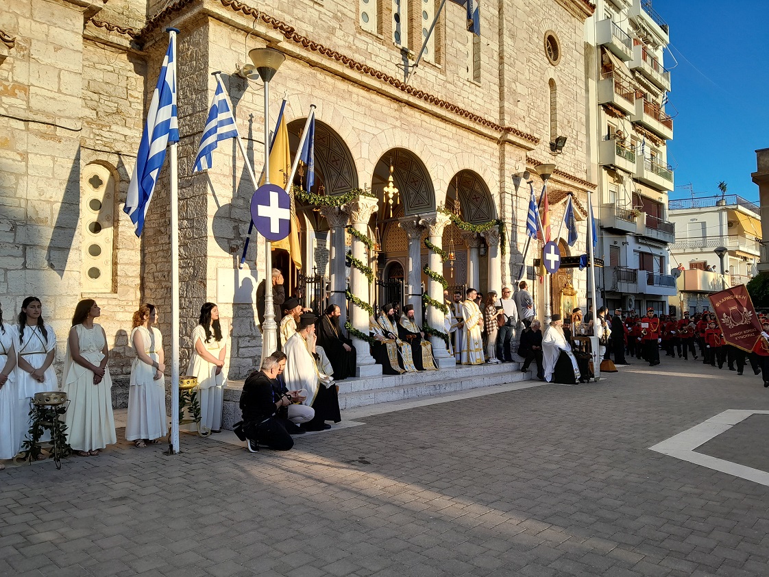 Με την ακολουθία του πανηγυρικού Εσπερινού στον Ιερό Μητροπολιτικό Ναό Αγίου Σπυρίδωνος στην Ιερά Πόλη του Μεσολογγίου συνεχίστηκαν σήμερα το απόγευμα, Σάββατο του Λαζάρου, 27 Απριλίου 2024, οι λαμπρές εκδηλώσεις για τον εορτασμό της 198ης επετείου της Εξόδου της ηρωικής Φρουράς των Ελευθέρων Πολιορκημένων.