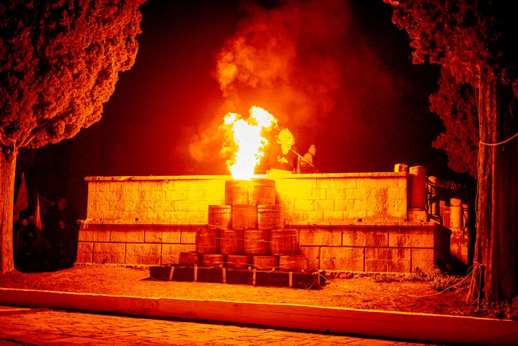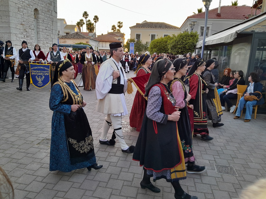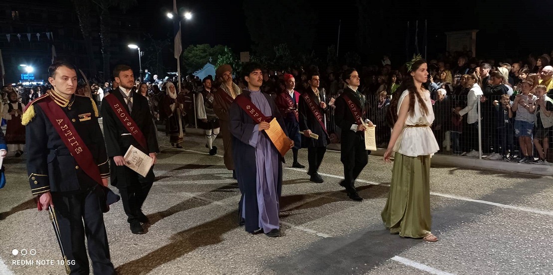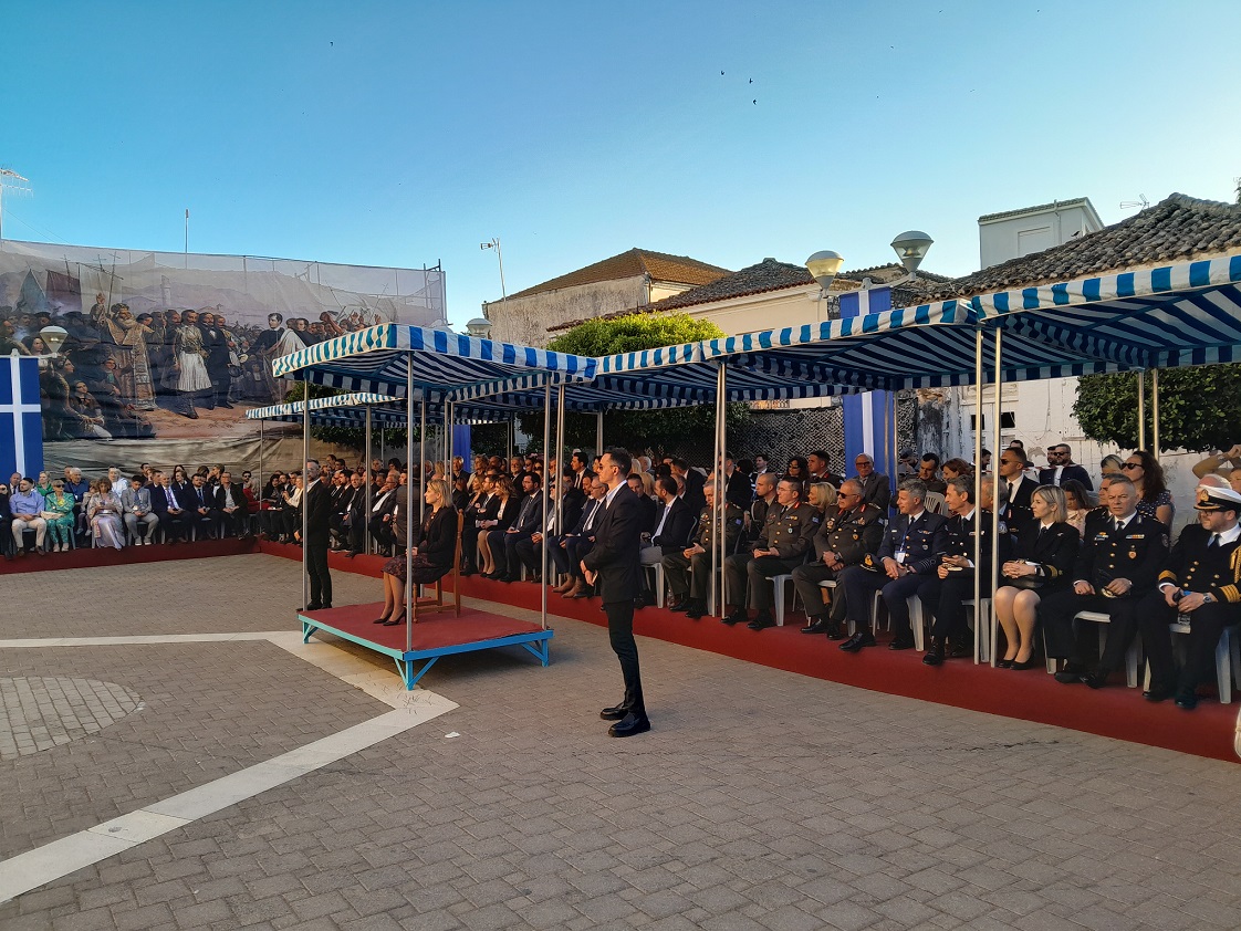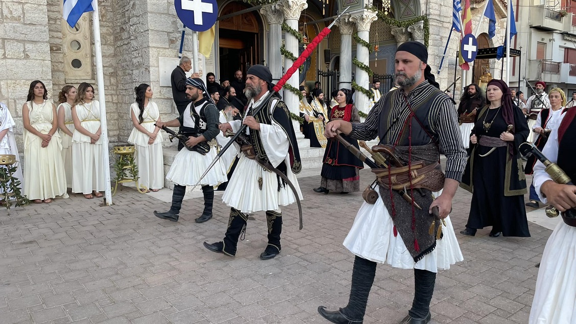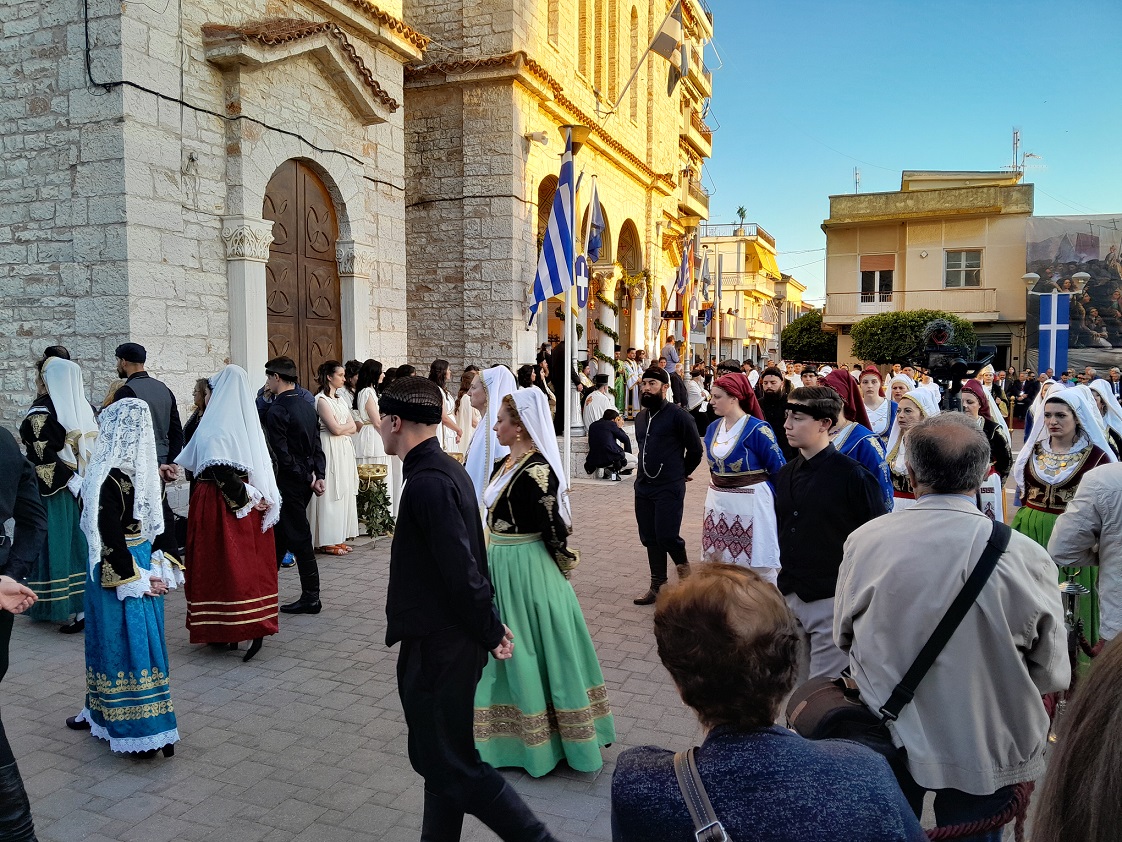 Ο Δήμαρχος της Ιεράς Πόλεως Μεσολογγίου κ. Σπυρίδων Διαμαντόπουλος εκφώνησε τον πανηγυρικό της ημέρας και αμέσως μετά πραγματοποιήθηκε η αναπαράσταση της ανατίναξης του Δημογέροντα Χρήστου Καψάλη, με τη συμμετοχή της χορωδίας του Πνευματικού Κέντρου του Δήμου Ιεράς Πόλεως Μεσολογγίου, υπό την διεύθυνση του Καλλιτεχνικού Διευθυντή κ. Σπύρου Χολέβα.