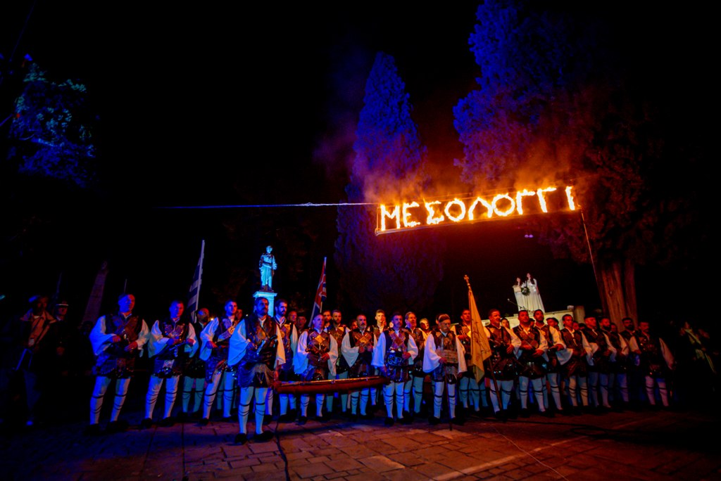 Στον Κήπο των Ηρώων, ενώπιον του Τύμβου, όπου φυλάσσονται τα οστά των Πεσόντων της Εξόδου, τελέσθηκε επιμνημόσυνη δέηση και έγινε κατάθεση στεφάνων από τους εκπροσώπους: της Ελληνικής Κυβερνήσεως, της Βουλής των Ελλήνων, της Πρεσβείας της Μεγάλης Βρετανίας στην Ελλάδα ως τιμώμενης χώρας, των Ενόπλων Δυνάμεων, των Σωμάτων Ασφαλείας, του Δικαστικού Σώματος, της Ακαδημίας Αθηνών, της Περιφέρειας Δυτικής Ελλάδας, τον Δήμαρχο Μόρφου, ως τιμώμενο αδελφοποιημένο Δήμο και τον Δήμαρχο Ιεράς Πόλεως Μεσολογγίου.