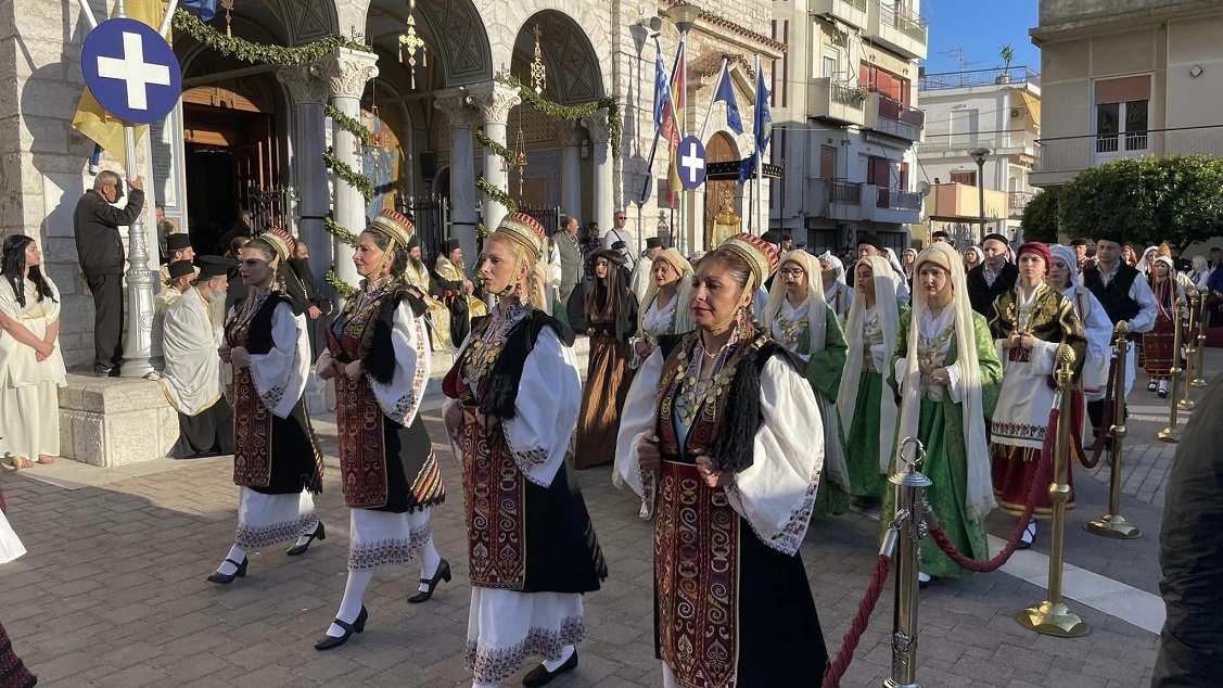 Ακολούθησε η λιτανευτική πομπή, με επικεφαλής την Εικόνα της Εξόδου, τον Σταυρό Ευλογίας του Επισκόπου Ρωγών και το Ιερό Λάβαρο, από τον Ιερό Ναό στον Κήπο των Ηρώων. Στην ιερά λιτανεία συμμετείχαν οι Άγιοι Αρχιερείς, ο Ιερός Κλήρος και οι αρχές του τόπου, ενώ προηγήθηκαν μαθητικές αντιπροσωπίες των Σχολείων της Ιεράς Πόλεως, μέλη πολιτιστικών και αθλητικών συλλόγων του Νομού Αιτωλοακαρνανίας και άλλων Νομών, φιλαρμονικές και τιμητικά αγήματα των τριών Σωμάτων του Ελληνικού Στρατού.