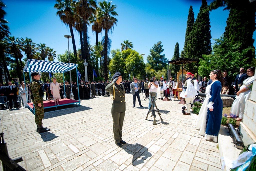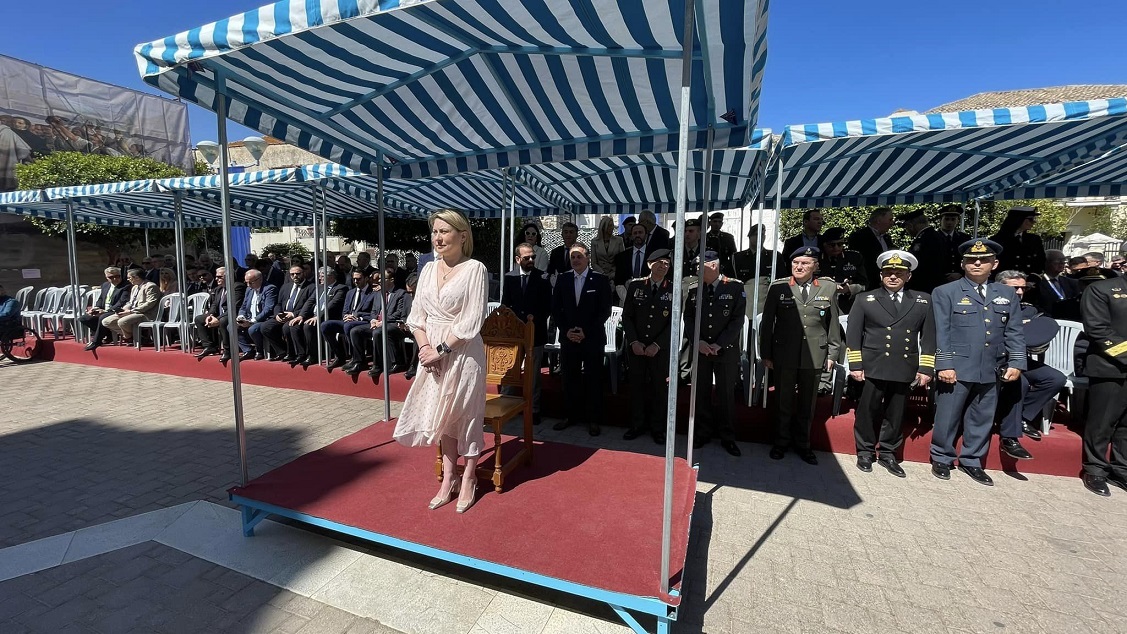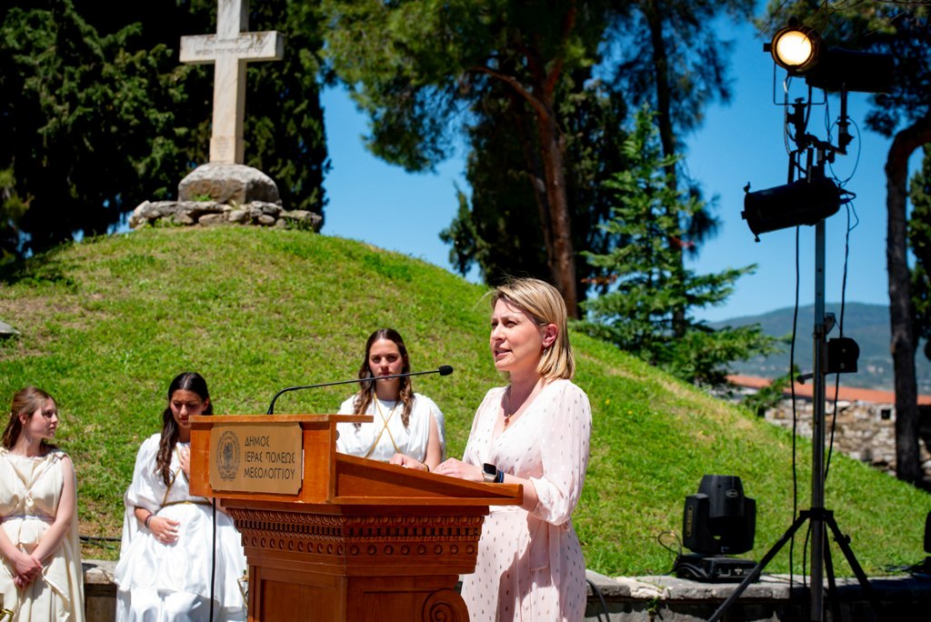 Ακολούθησαν η κατάθεση στεφάνου και η εκφώνηση του πανηγυρικού της ημέρας από την εκπρόσωπο της Ελληνικής Κυβερνήσεως, ενώ η υψίφωνος κα Βίβιαν Ντάγλας απέδωσε το μοιρολόι «Να ζει το Μεσολόγγι».