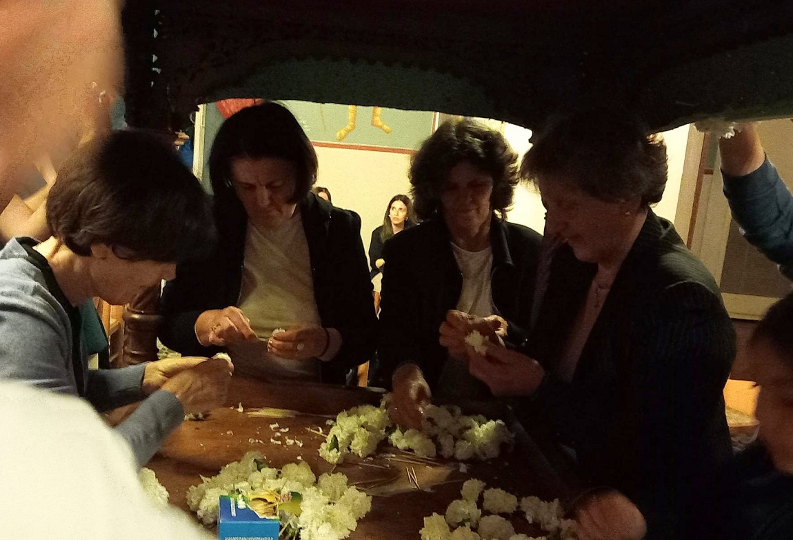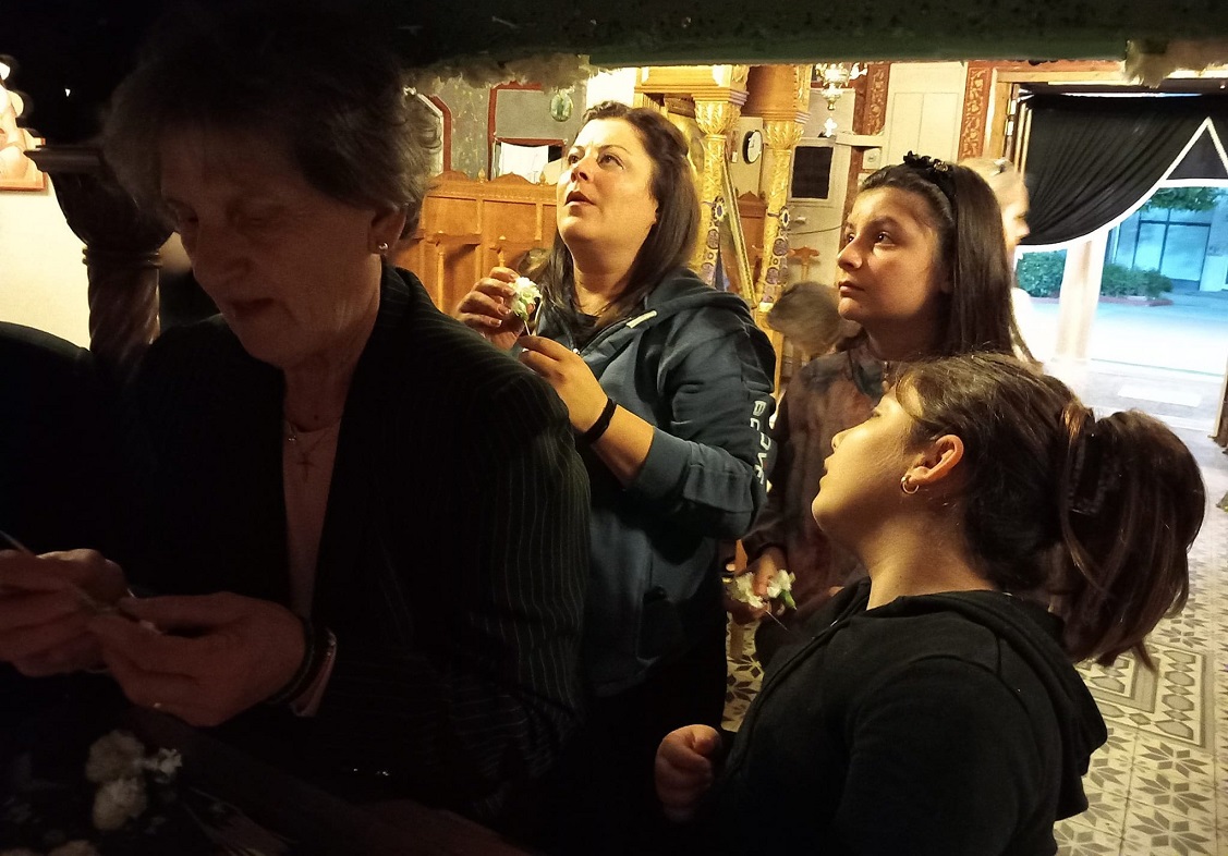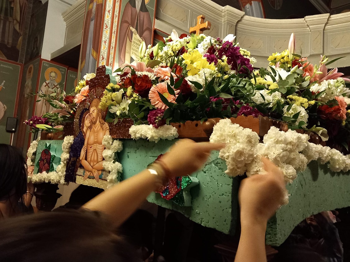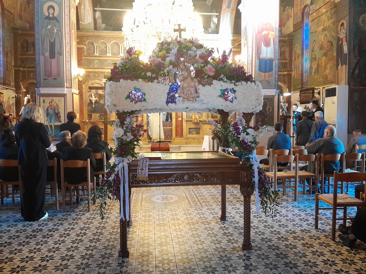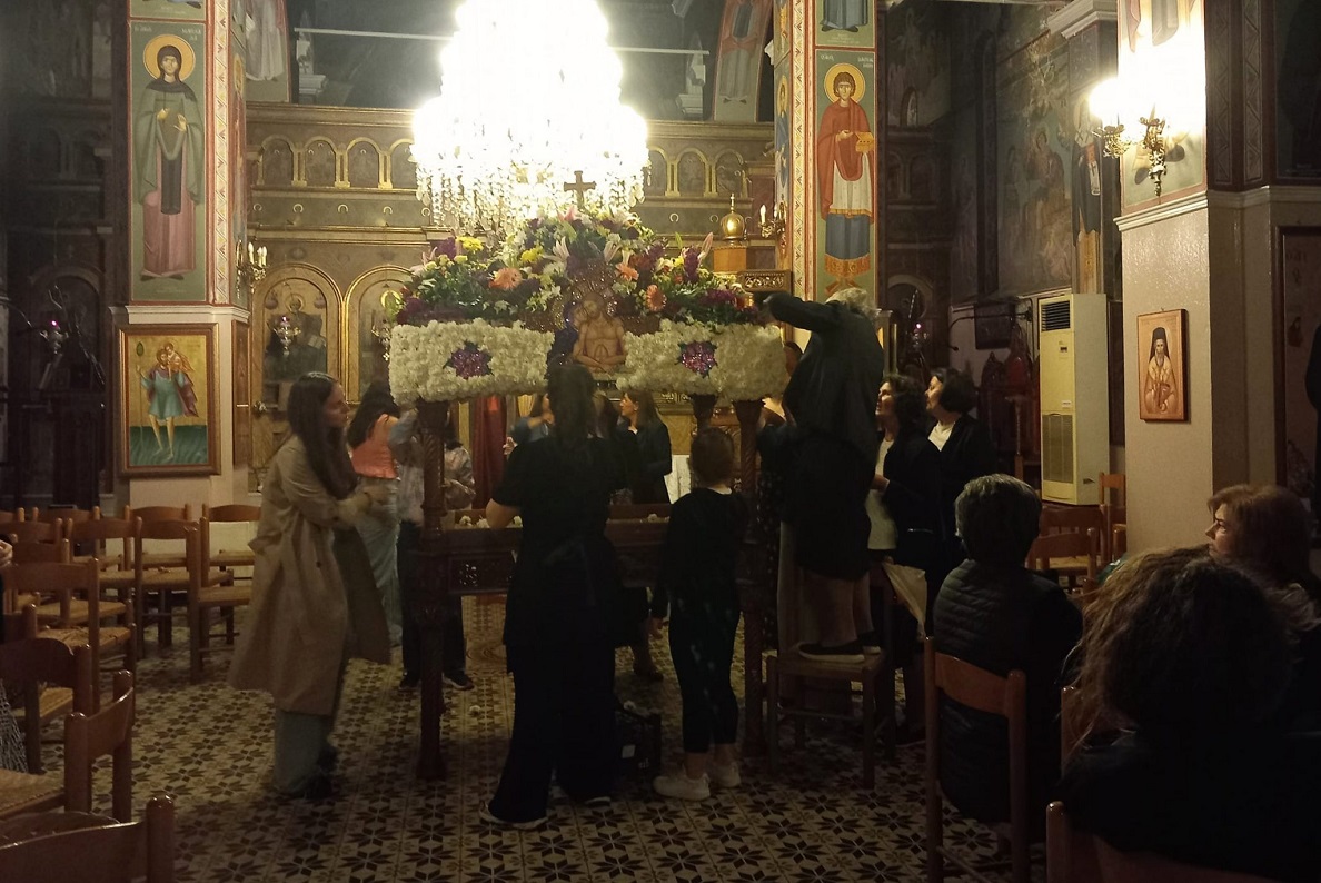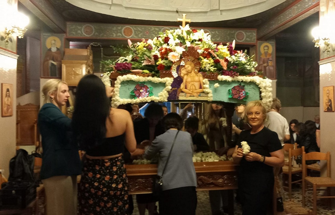 Μετά την ακολουθία της Αποκαθήλωσης, μικροί και μεγάλοι προσέρχονται ευλαβικά για να προσκυνήσουν τον ανθοστόλιστο Επιτάφιο.