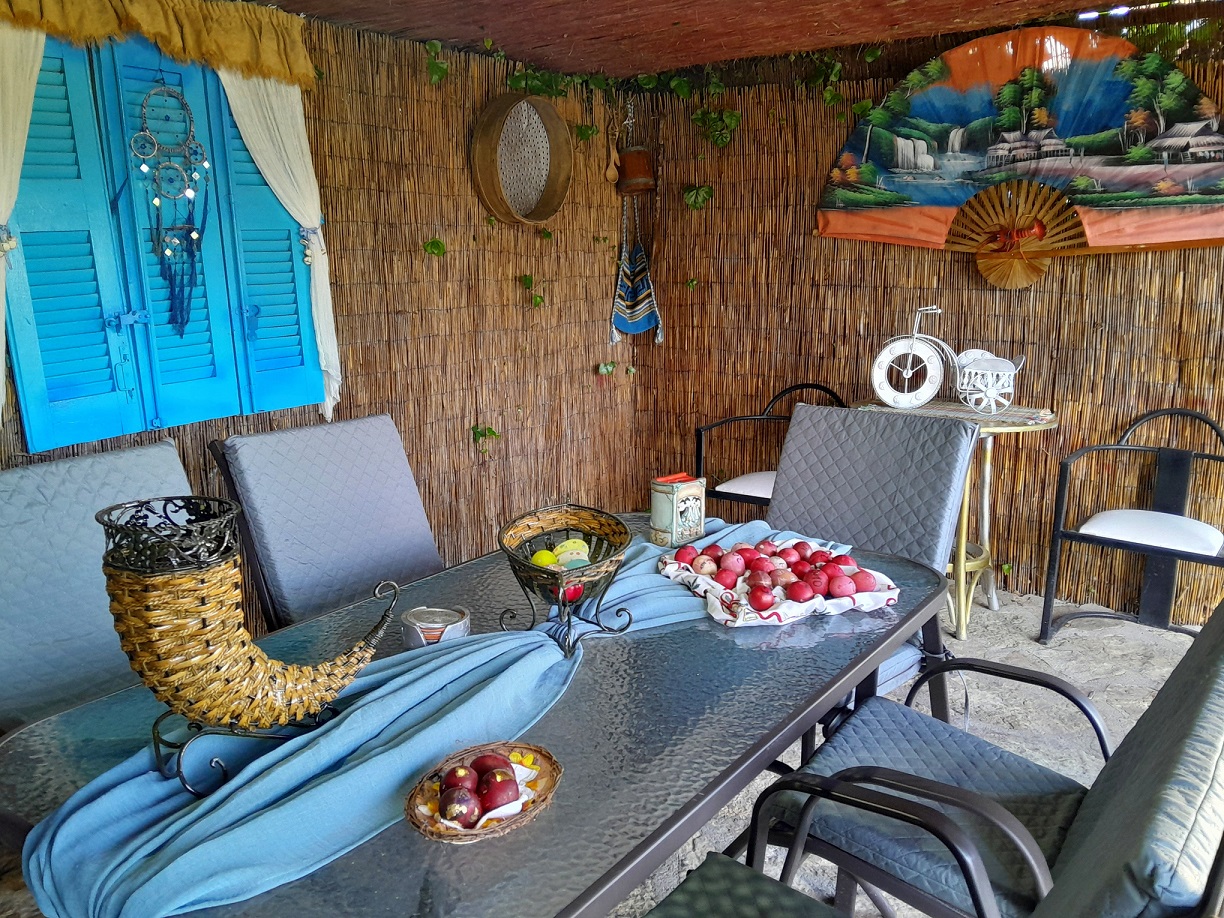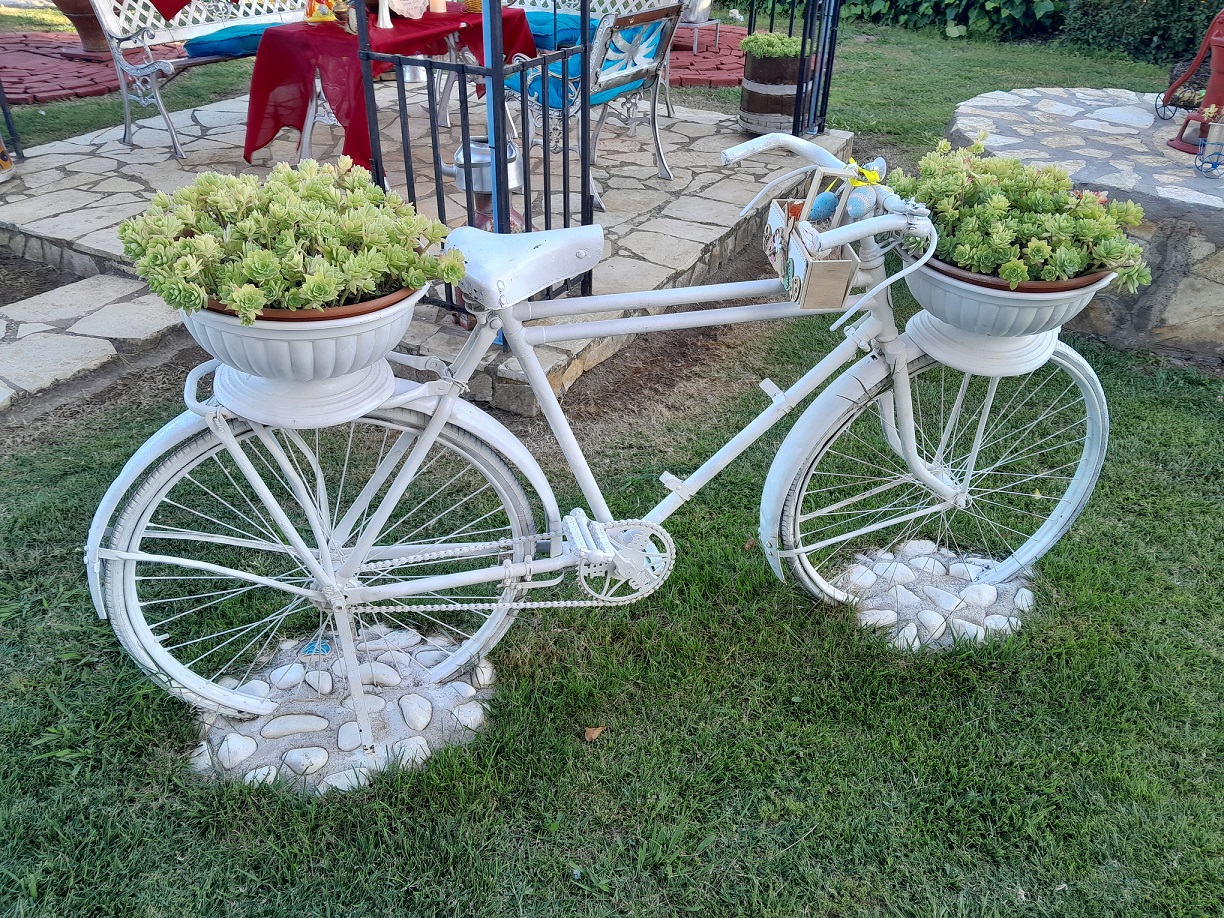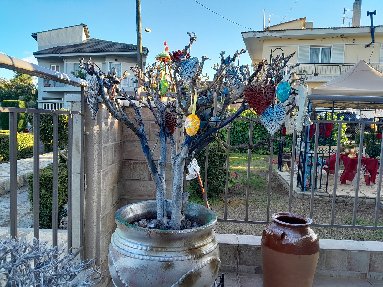 Πράγματι μοιάζει σαν ένα μικρό θεματικό πάρκο, με μεγάλα διακοσμητικά αυγά, με συνθέσεις λουλουδιών και πολύχρωμων βαμμένων αυγών κρεμασμένα στο κιόσκι ή στο φράκτη, τοποθετημένα δίπλα στα παλιά αντικείμενα που έχει συγκεντρώσει με προσωπικό κόπο, η κυρία Νίκα, ενώ ένα παλιό ποδήλατο και μια βρύση (τρόμπα) ξεχωρίζουν ανάμεσα στα άλλα κομμάτια της συλλογής της…