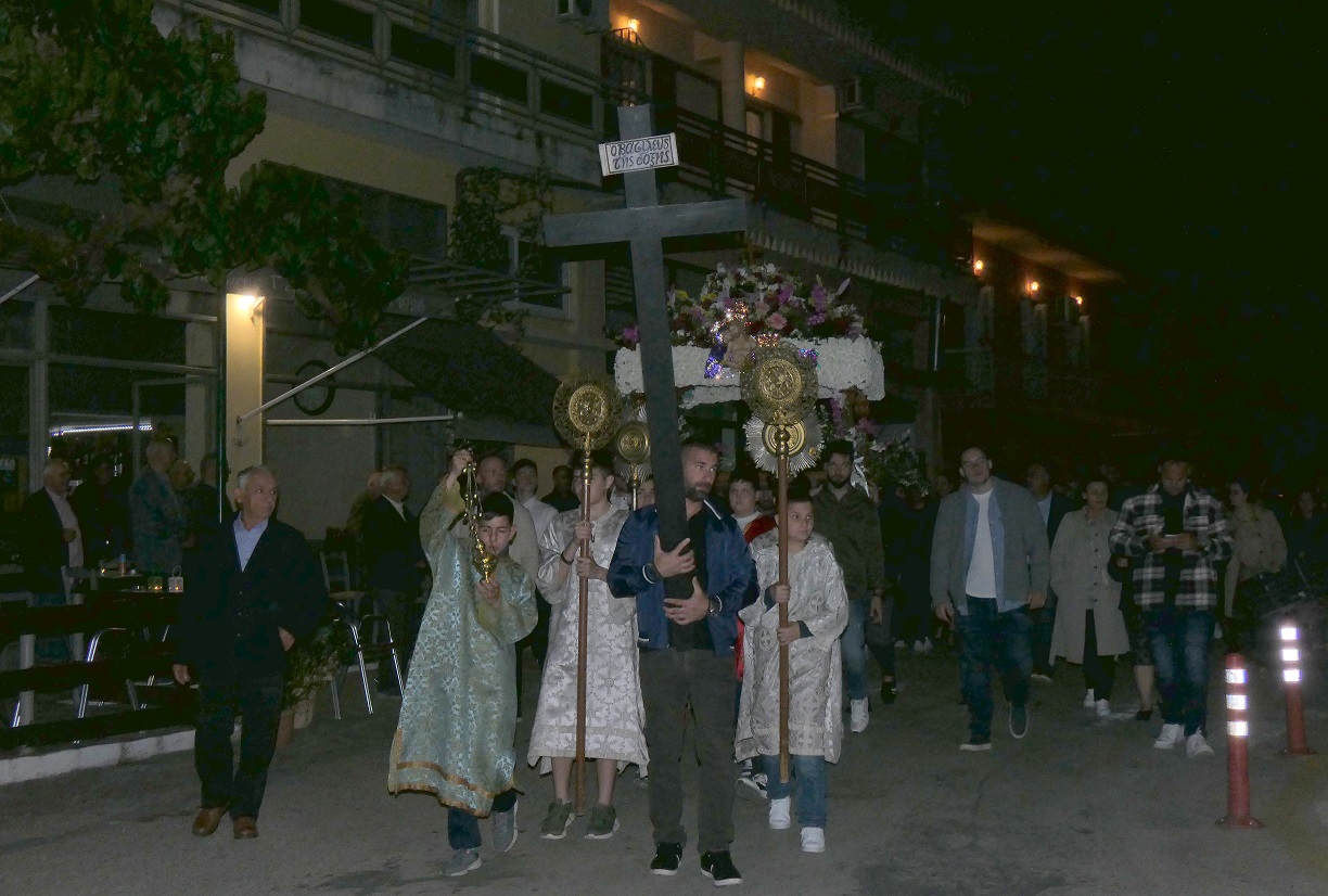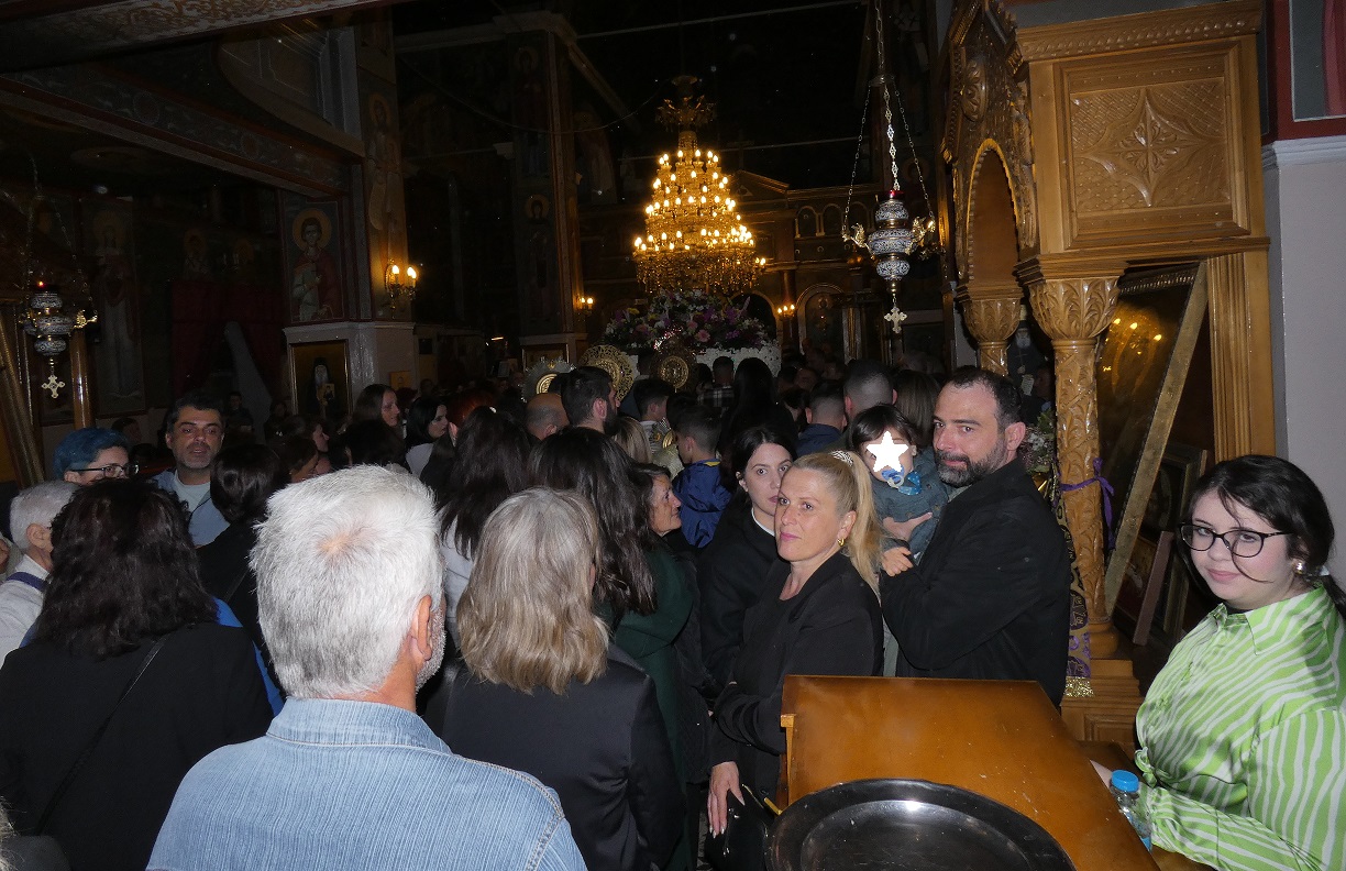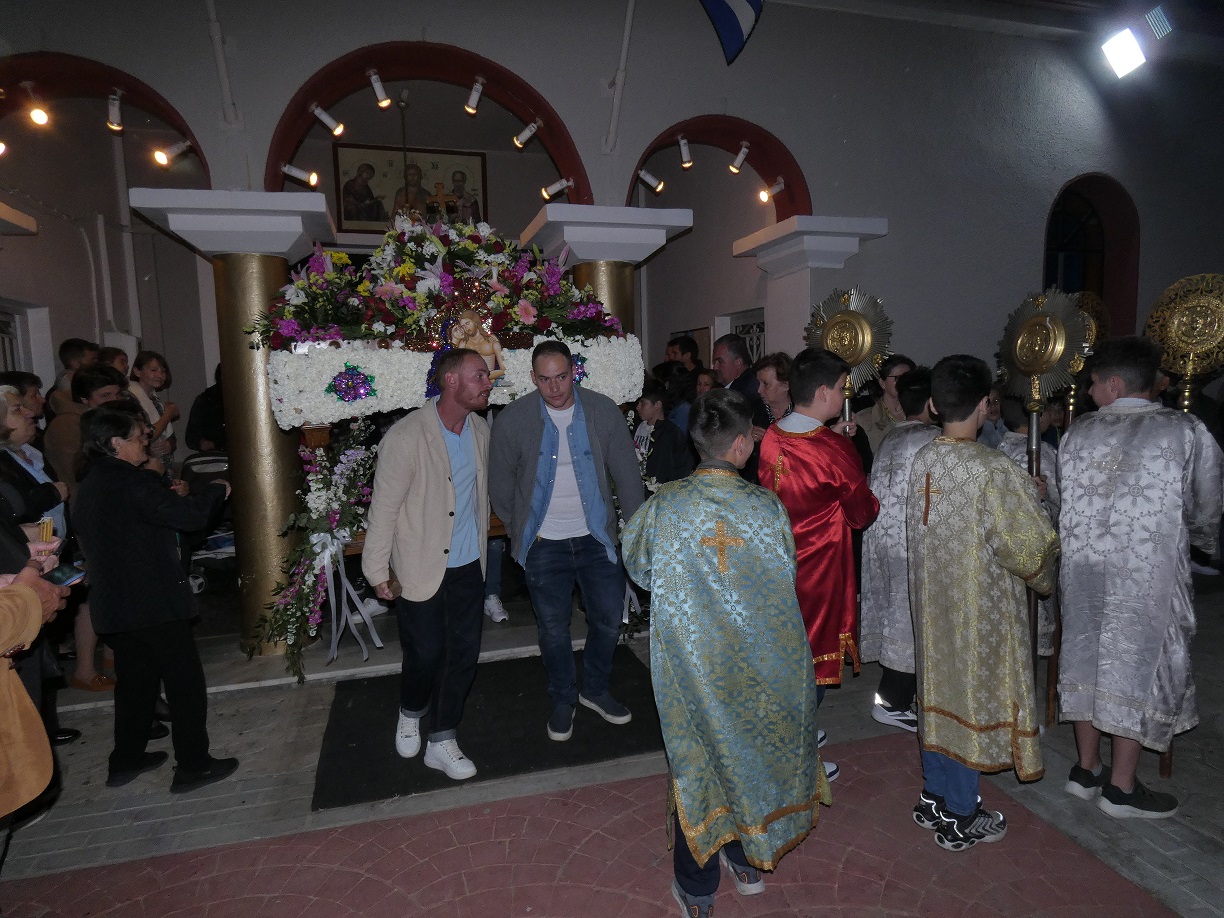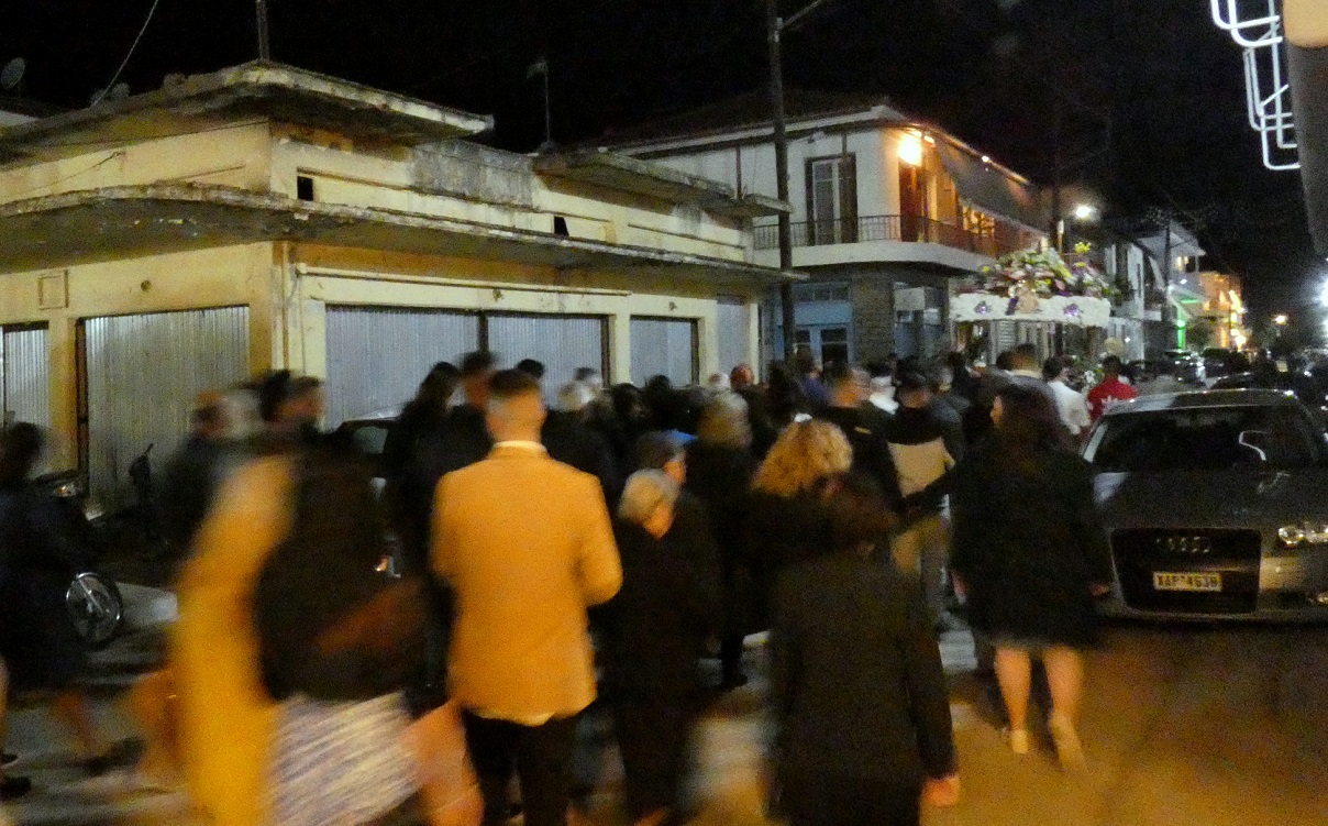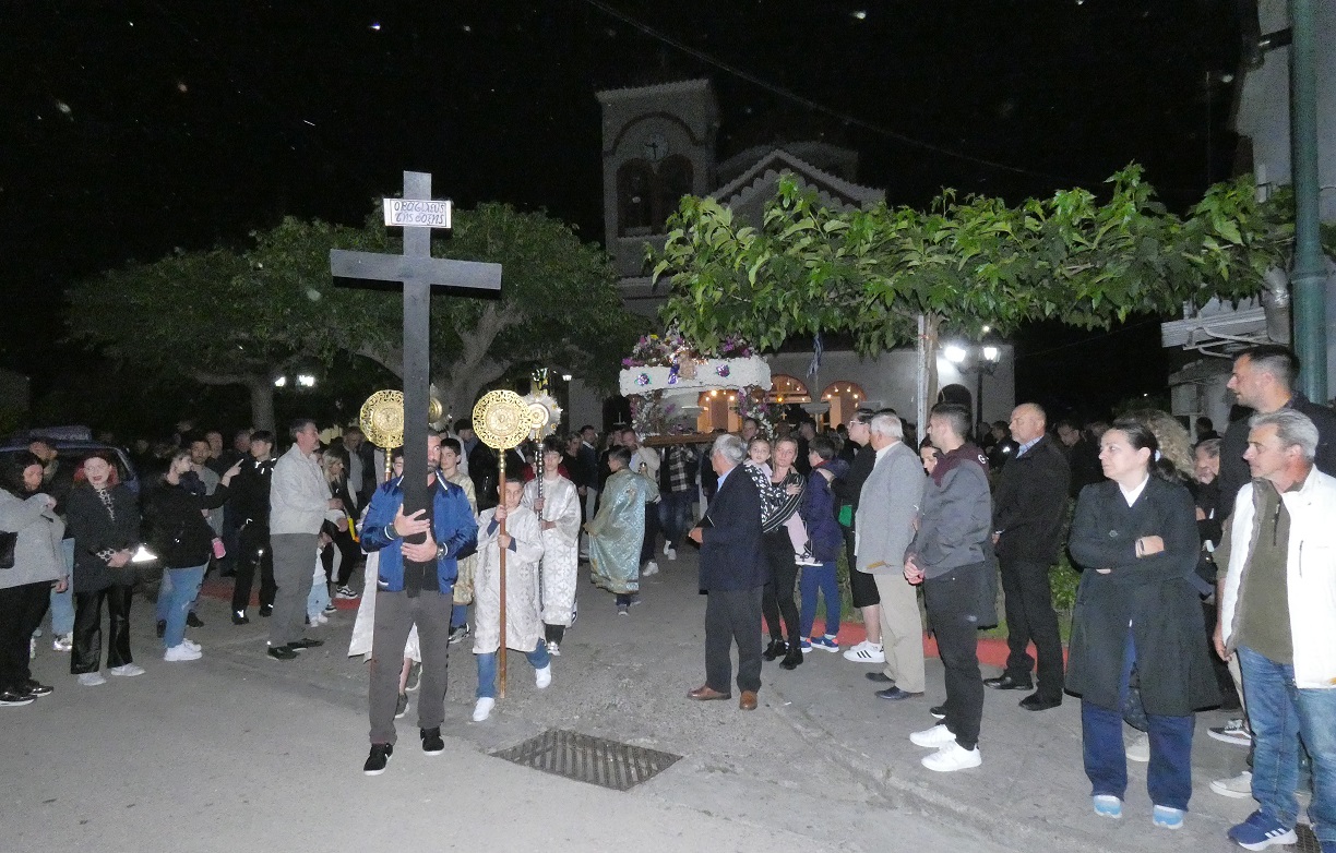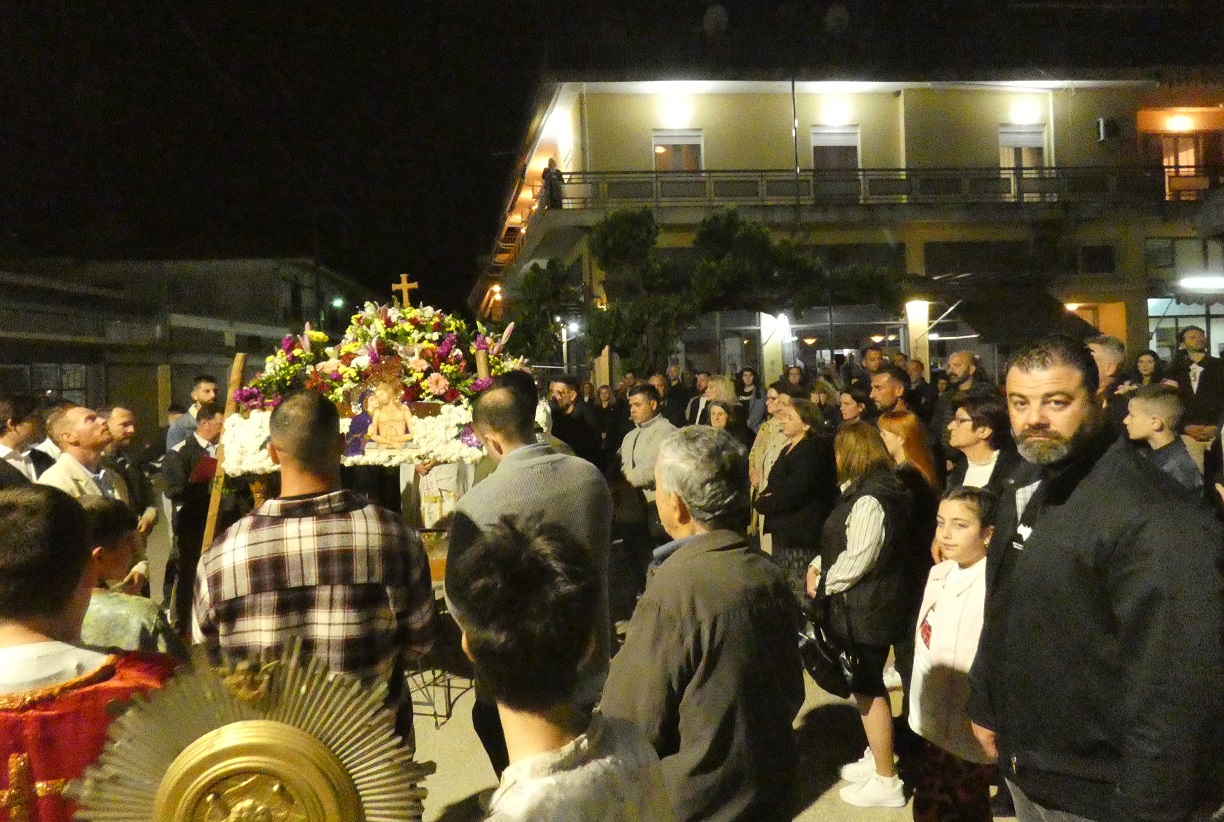 Στη συνέχεια οι πιστοί, ακολούθησαν την περιφορά του Επιταφίου ο οποίος ήταν στολισμένος με πολύχρωμα λουλούδια, γύρω από το ναό, και κατευθύνθηκαν προς το εξωκλήσι του παλαιού Ι.Ν. Αγίου Νικολάου.