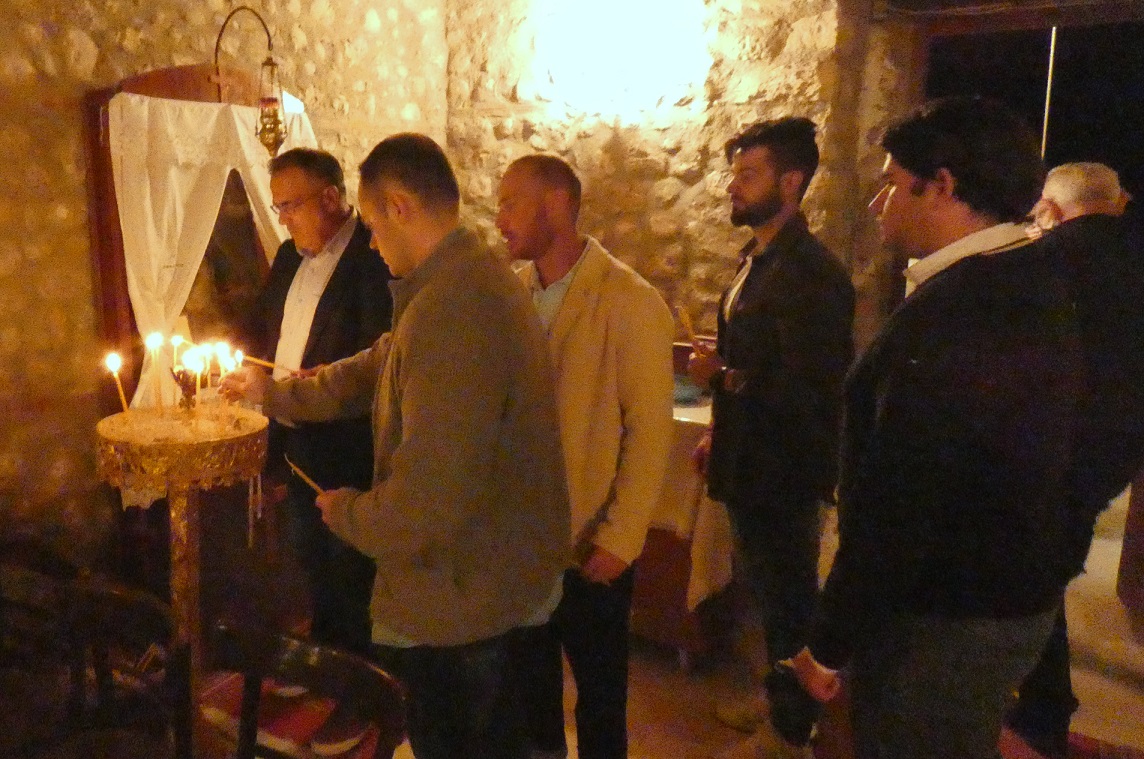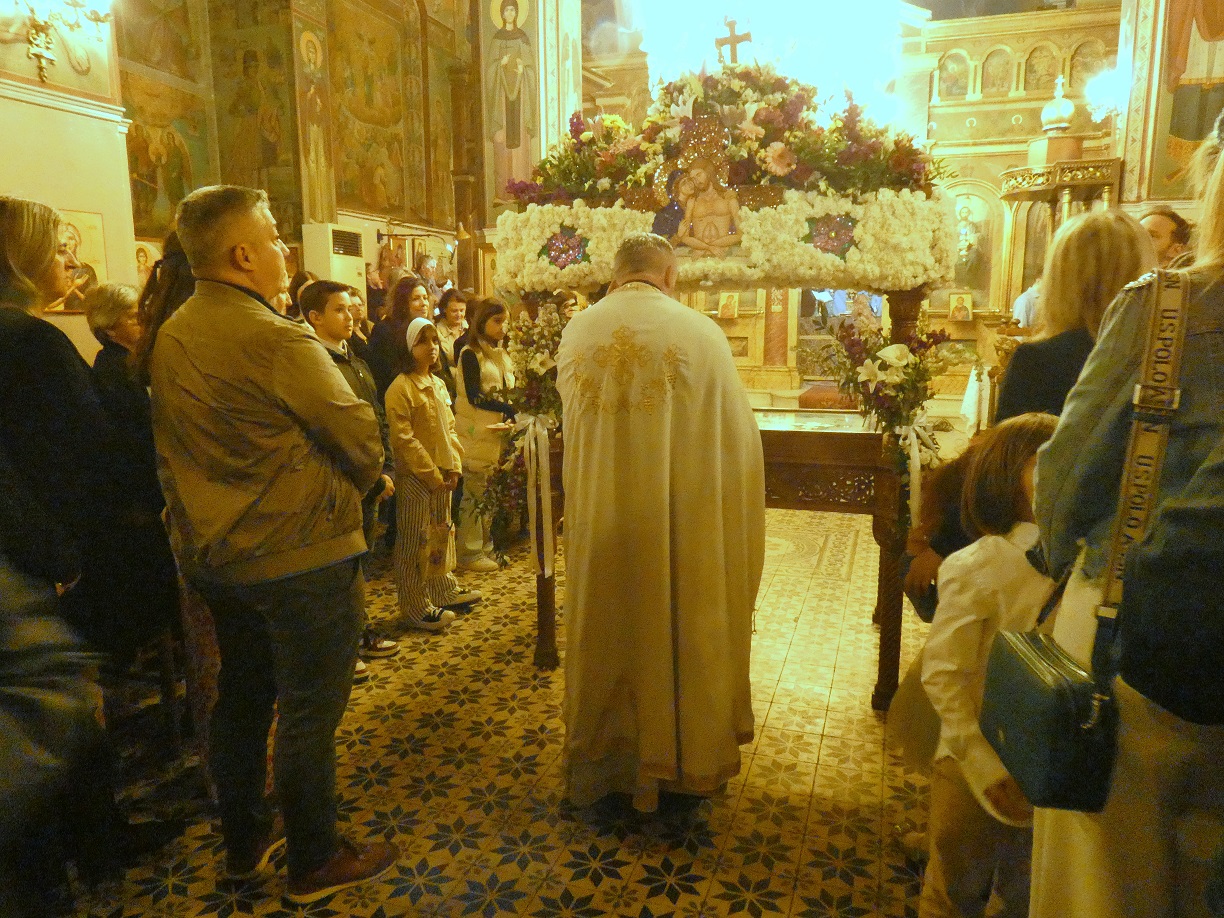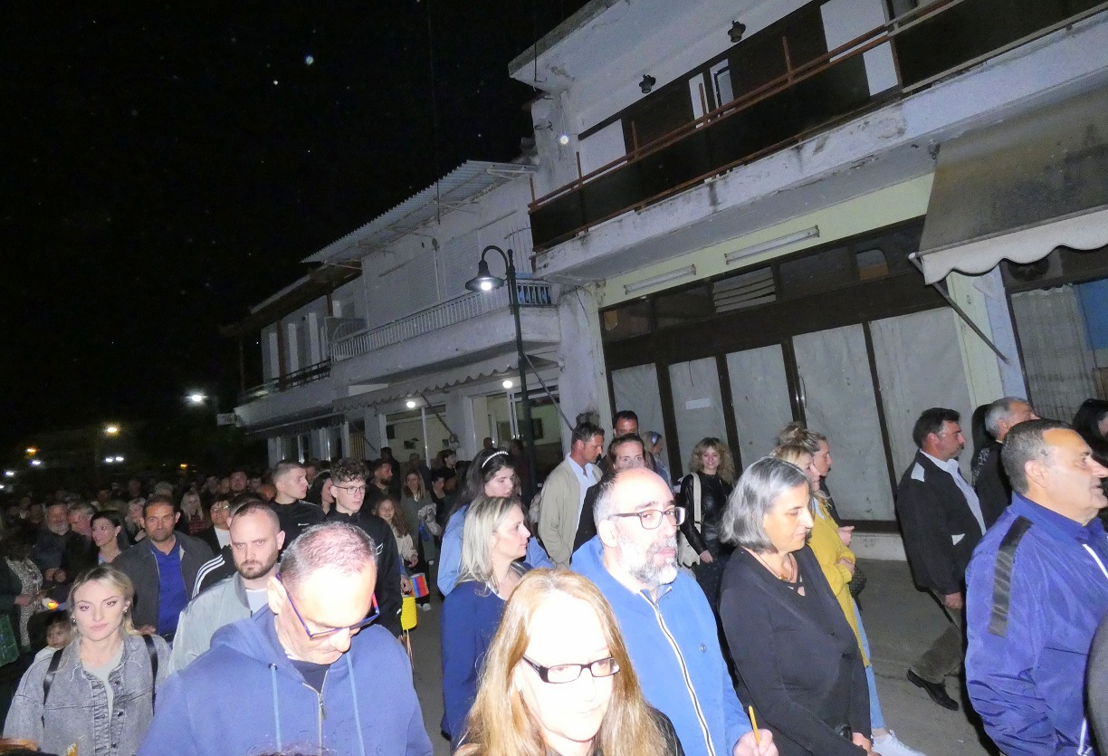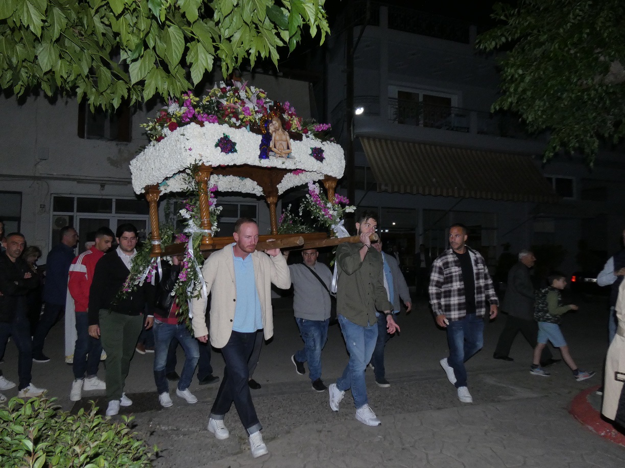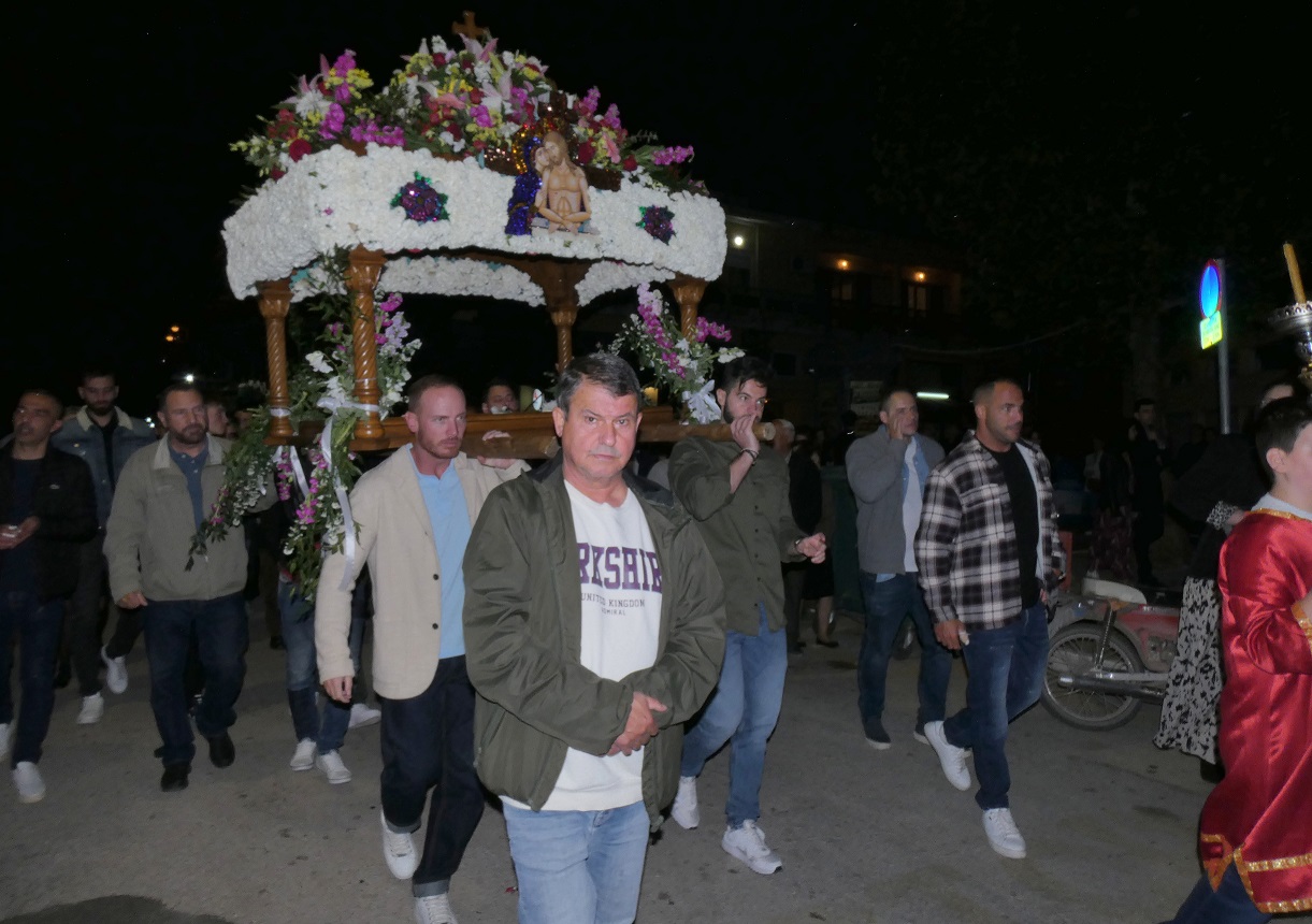 Στη συνέχεια οι πιστοί, ακολούθησαν την περιφορά του Επιταφίου ο οποίος ήταν στολισμένος με πολύχρωμα λουλούδια, γύρω από το ναό, και κατευθύνθηκαν προς το εξωκλήσι του παλαιού Ι.Ν. Αγίου Νικολάου.